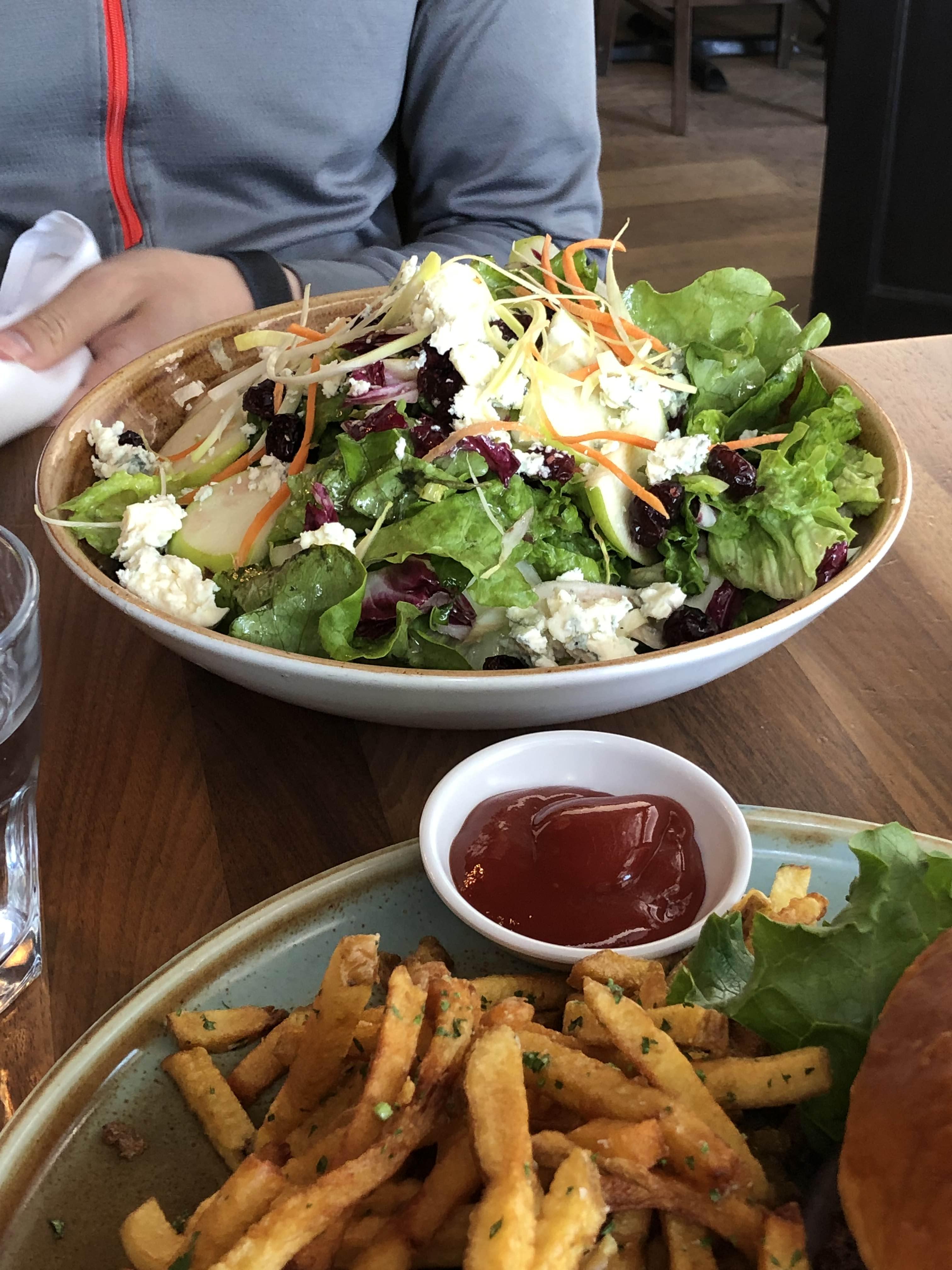 오늘따라 크게 입맛이 없다며 어쩐 일인지 추가 토핑없이 기본 샐러드를 골랐던 V. 신선하고 드레싱도 맛있었는데 블루치즈가 많이 올라가 있어서 우리 둘 입맛인 좀. 그래도 맛있게 거의 다 먹었다.