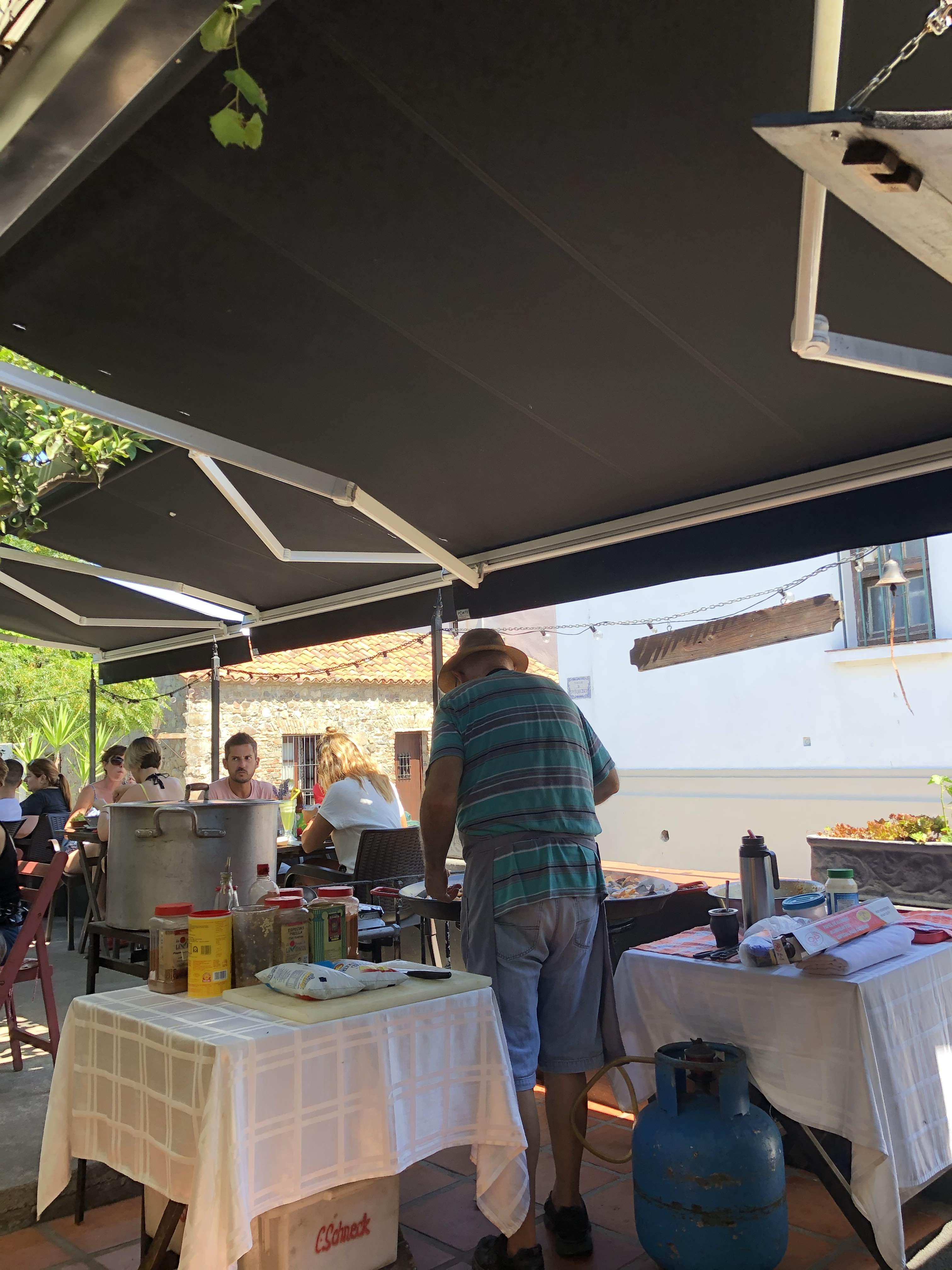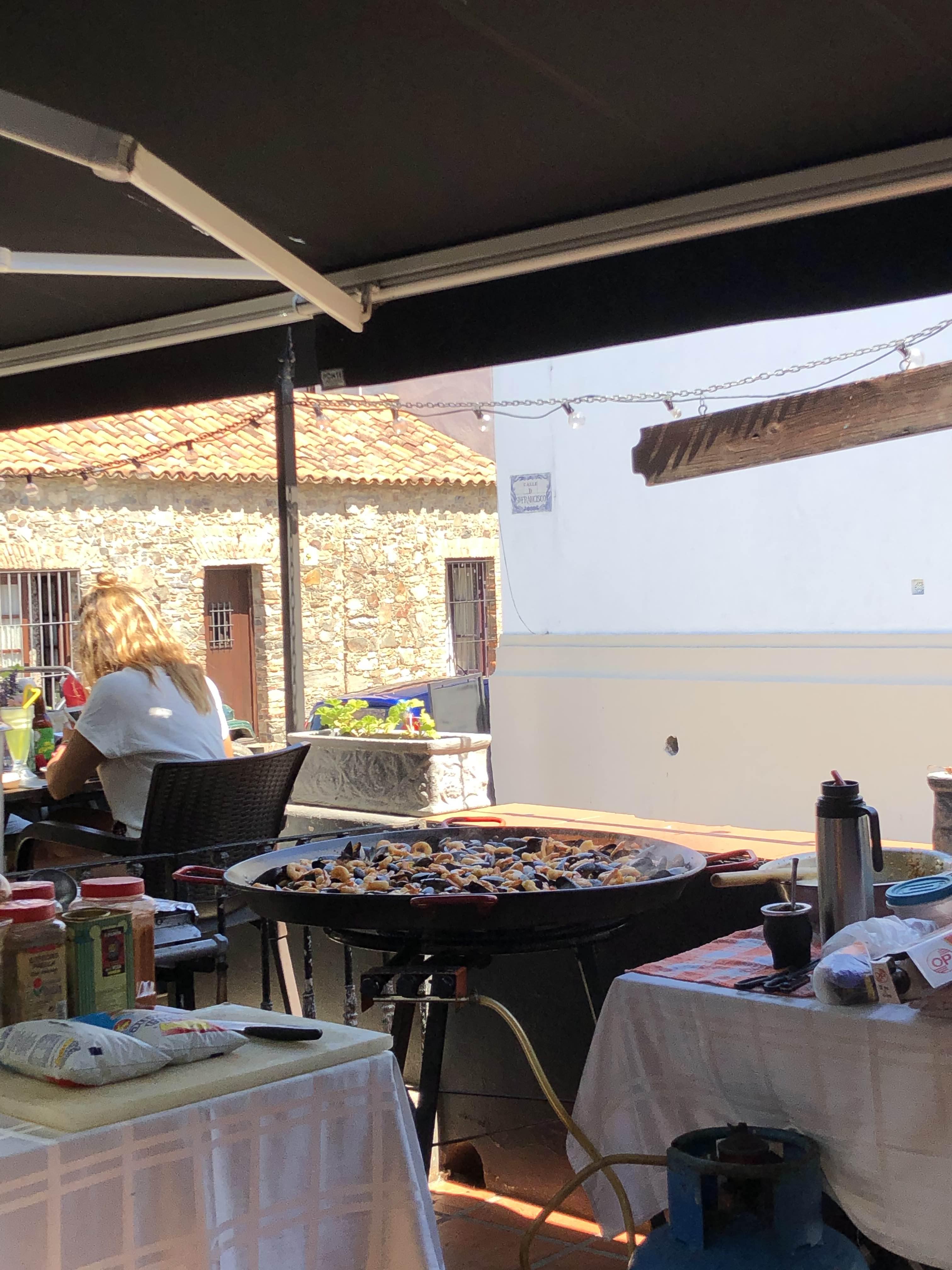 그렇게 한참을 기다리다보니 드디어 빠에야가 나왔다! 빠에야가 완성되자마자 미리 주문한 사람들이 많아서 이렇게 끊임없이 나눠 퍼담고 나니 금방 동이 났다. 조리하는 데 시간이 오래 걸리기 때문에 런치타임에 딱 한판만 만들텐데, 이걸 놓치지 않고 이날 먹을 수 있어서 너무 행운이었다!