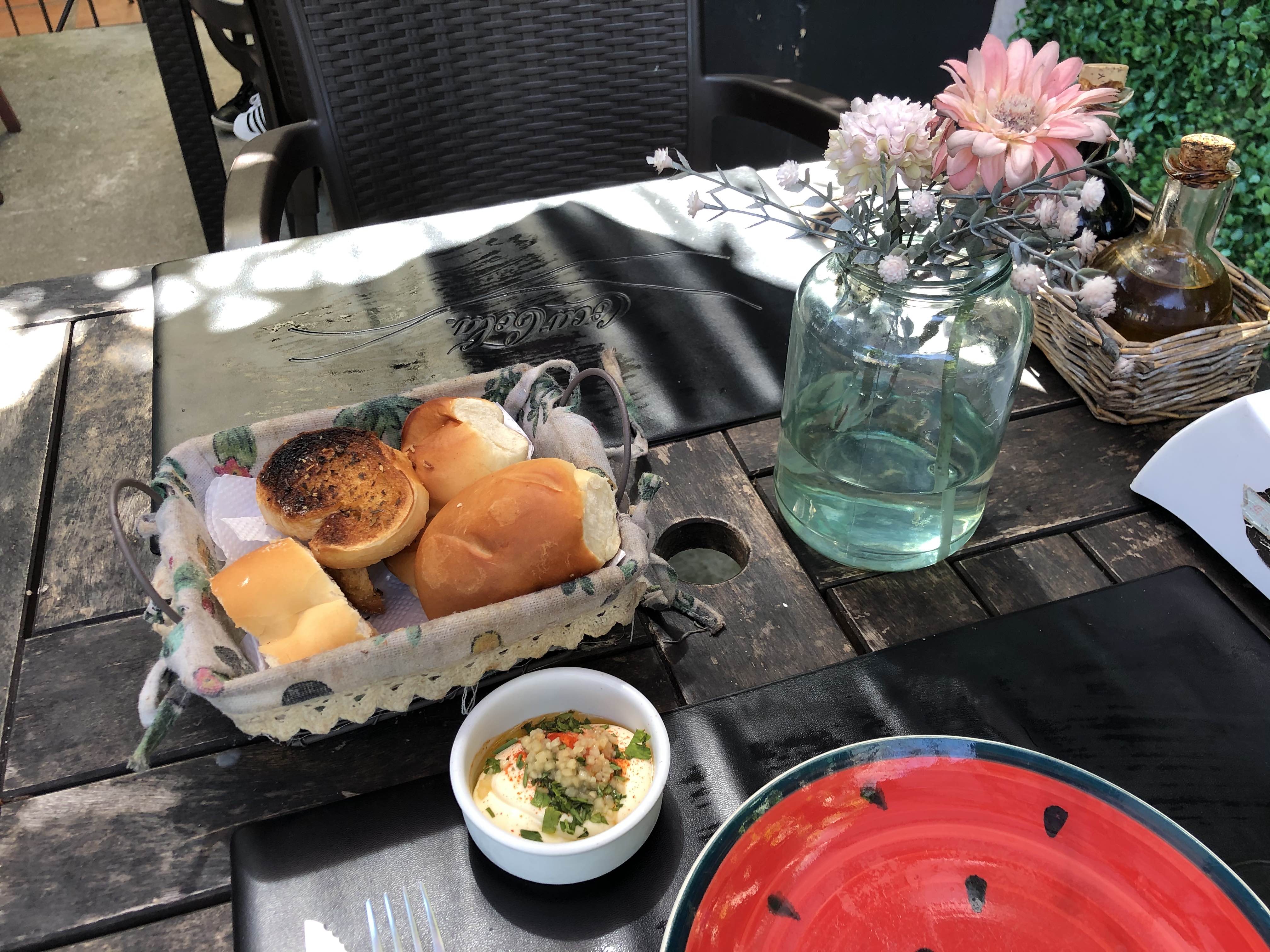 따끈따끈한 식전빵이 나왔다. 이 식전빵에 (아마도) 마요네즈에 허브와 마늘 다진 거, 올리브유 등이 올라간 것을 올려 먹으니 정말 맛있었다. 오전에 체크아웃만 하고 나와서 아침을 걸렀던터라 이게 공복에 먹은 첫 음식이라 더 맛있게 느껴졌을수도!