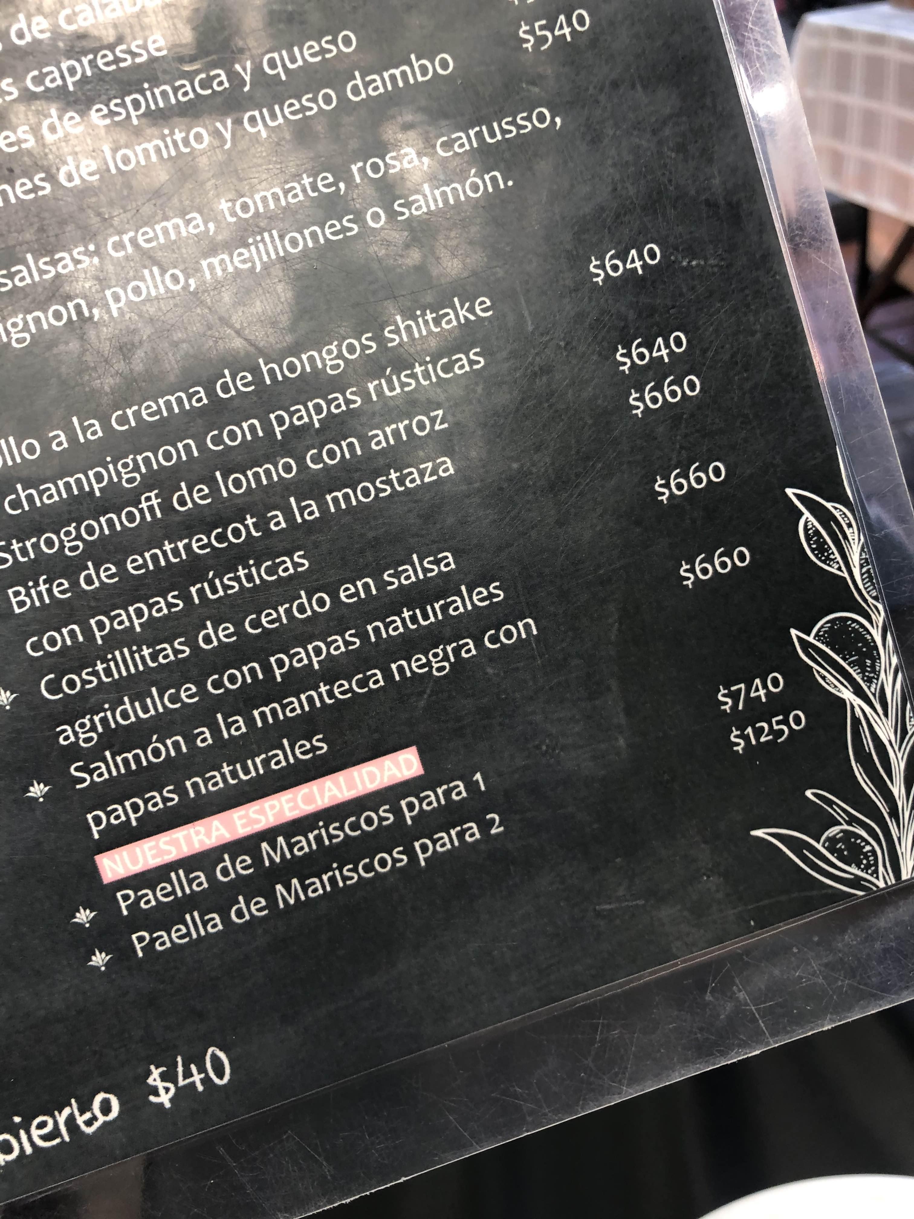 영어 메뉴가 없어서 뭘 시키면 좋을지 곤란했지만 다행히 한달 가까이 여행을 하며 Mariscos가 Seafood를 의미한다는 건 알았고, 들어오는 입구에서부터 셰프가 큰 팬에 파에야를 만들기 시작했기 때문에 서버에게 손짓으로 저걸로 주문하고 싶다고 전달해서 주문을 할 수 있었다. 지금 스페인어를 조금 공부한 상태에서 다시 이 메뉴판을 보니 Paella를 읽을수는 있겠는데, 당시에 스페인어 수준 0인 상태에서는 봐도 뭐가 뭔지 알 수가 없었다.