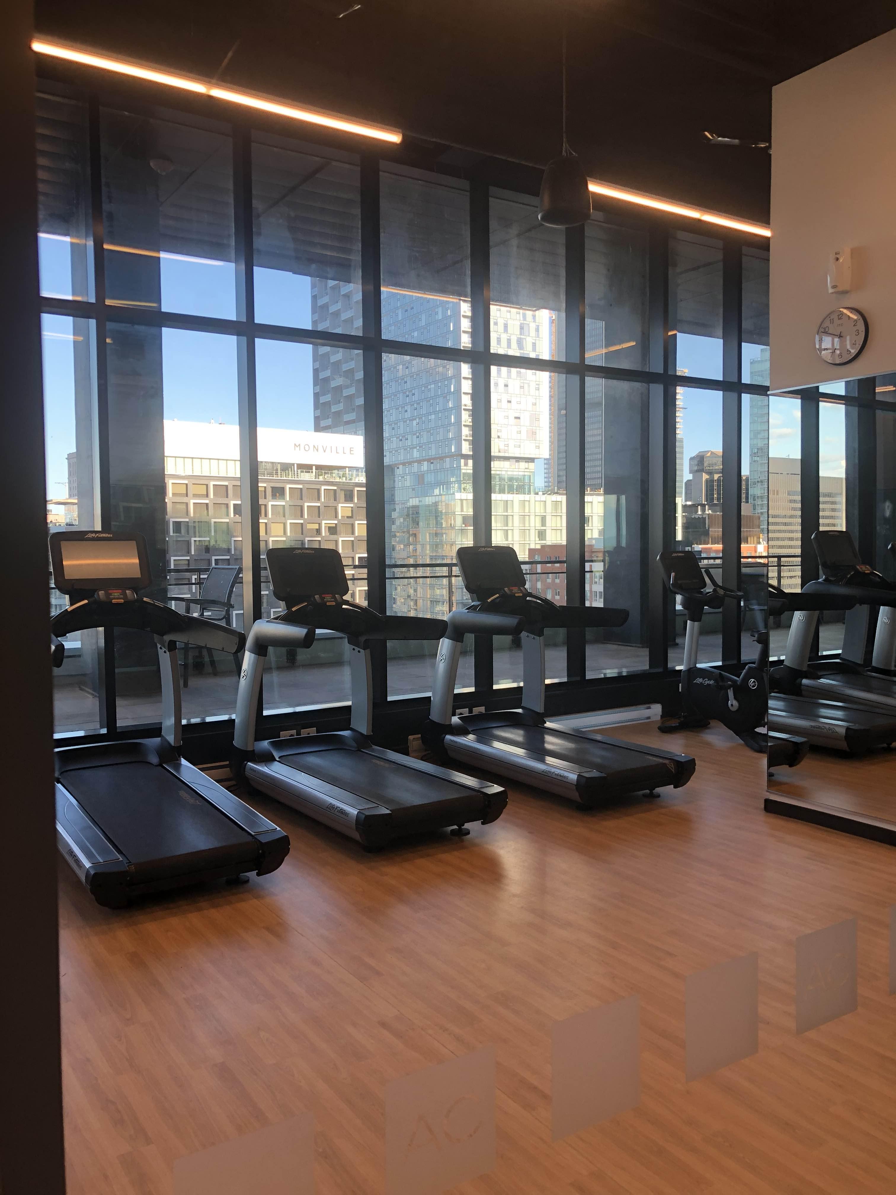 체크인해서 짐 풀고, 샤워하고, 옷 갈아입고 올드몬트리올 가기 전에 미리 둘러본 꼭대기 층 gym이랑 수영장. 전날 호텔 수영장이 닫혀있어서 속상했는데, 여기서 수영할 생각에 정말 설렜다! 참고로 수영은 못하고, 그냥 물에 들어갈 생각만으로 신남.