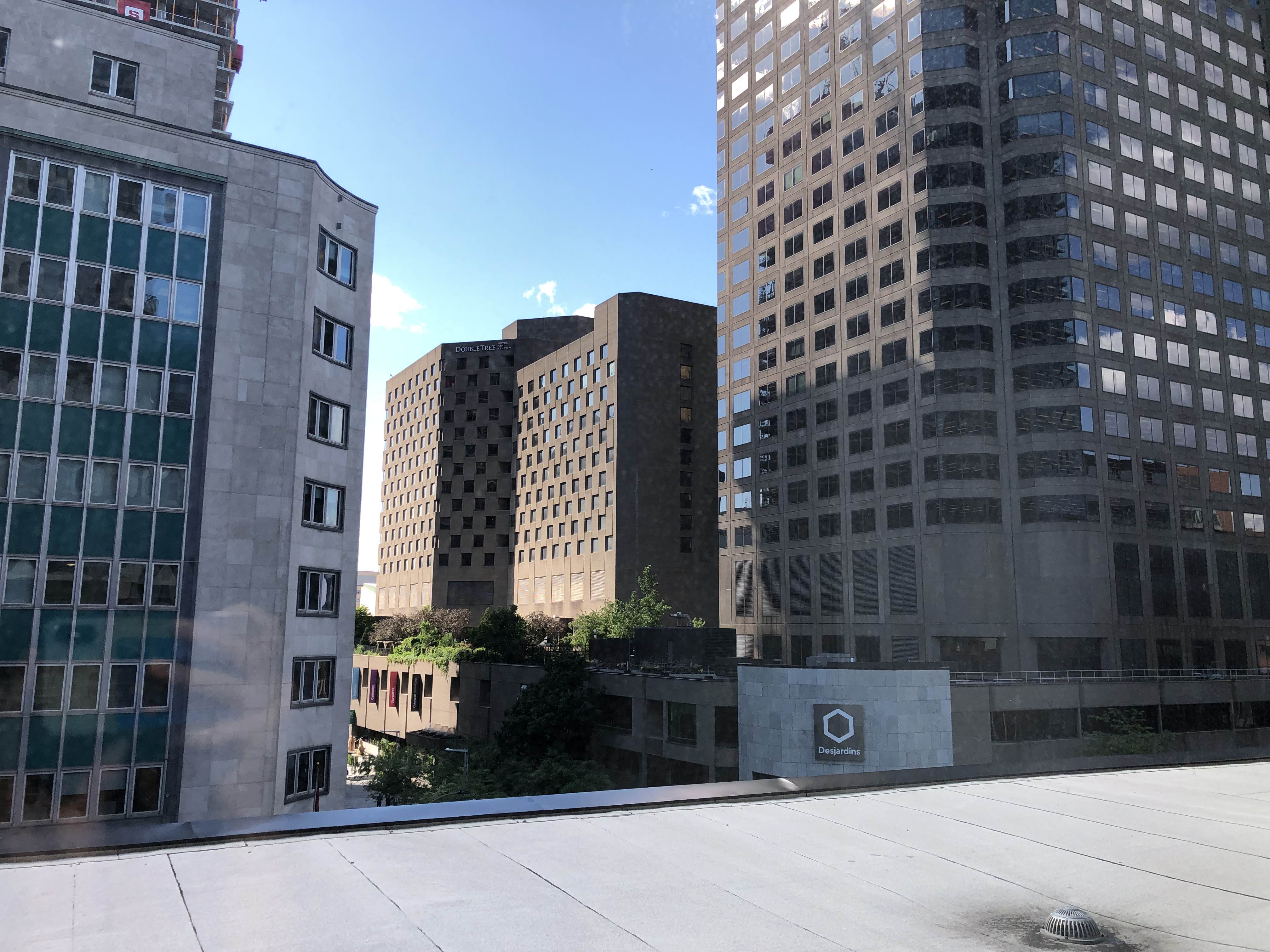 사실 이렇게 앞이 막힌 다운타운 뷰라 들어가자마자 불평을 해버렸다. 단 하루지만 이왕 호텔에서 묵는 거 조금 더 고층에 다른 뷰였으면 좋았을텐데... 하고 룸을 바꿔달라 하자고 졸랐는데, 알고보니 이날 2인이 묵을 수 있는 객실은 딱 이거 하나만 남았었다고 한다. 생각해보니 금요일이라 당연히 그랬겠다는 생각이... 우리는 몬트리올 오기 불과 며칠 전에 예약을 한거라... 이 정도 뷰라도 보이는 거에 감사하기로.