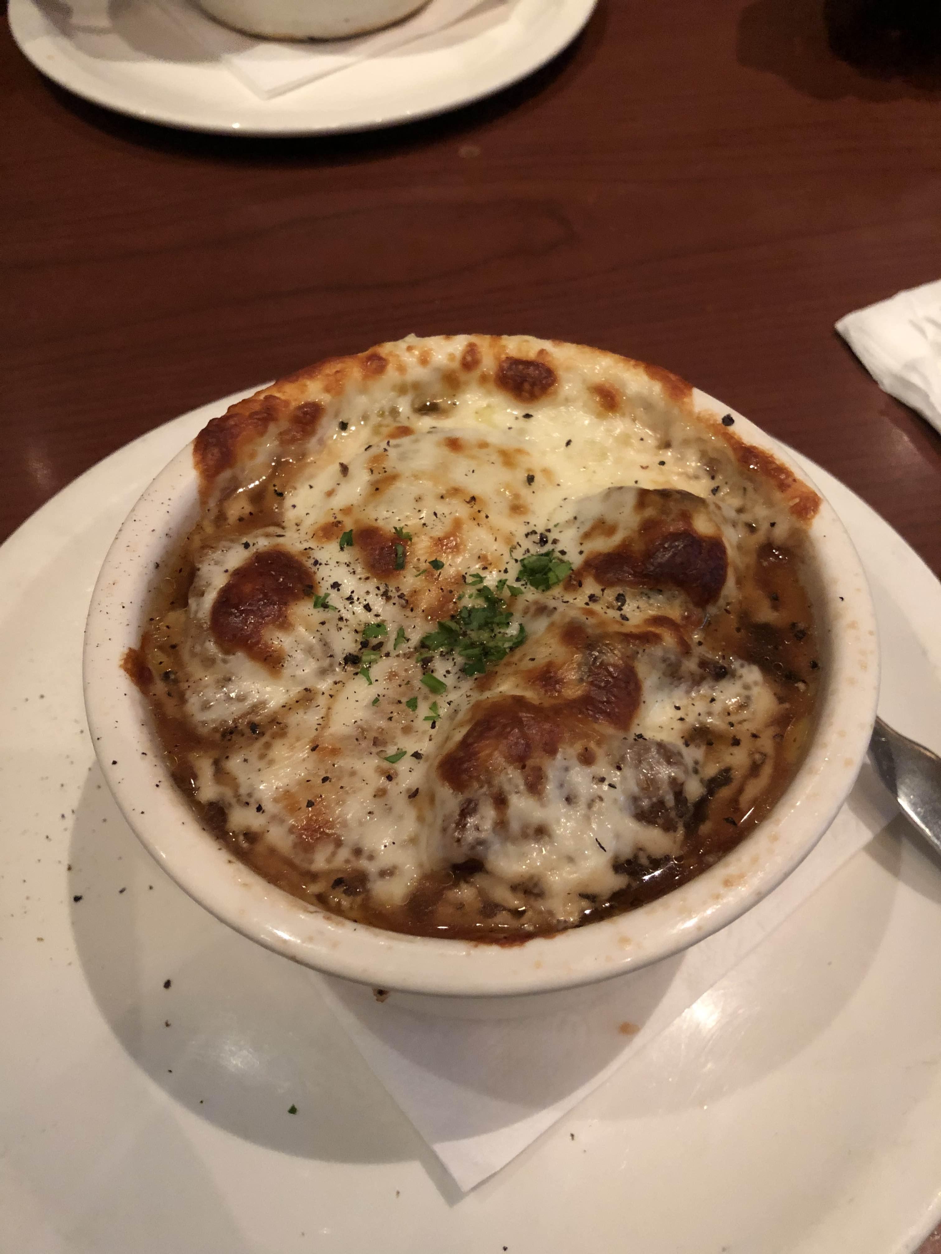 어니언 수프를 먼저 시켰는데, 약간 쌀쌀한 날씨에 돌아다니다 이거 먹으니 속이 싹 풀림. 쌀쌀한 날 어니언 수프는 진리다.