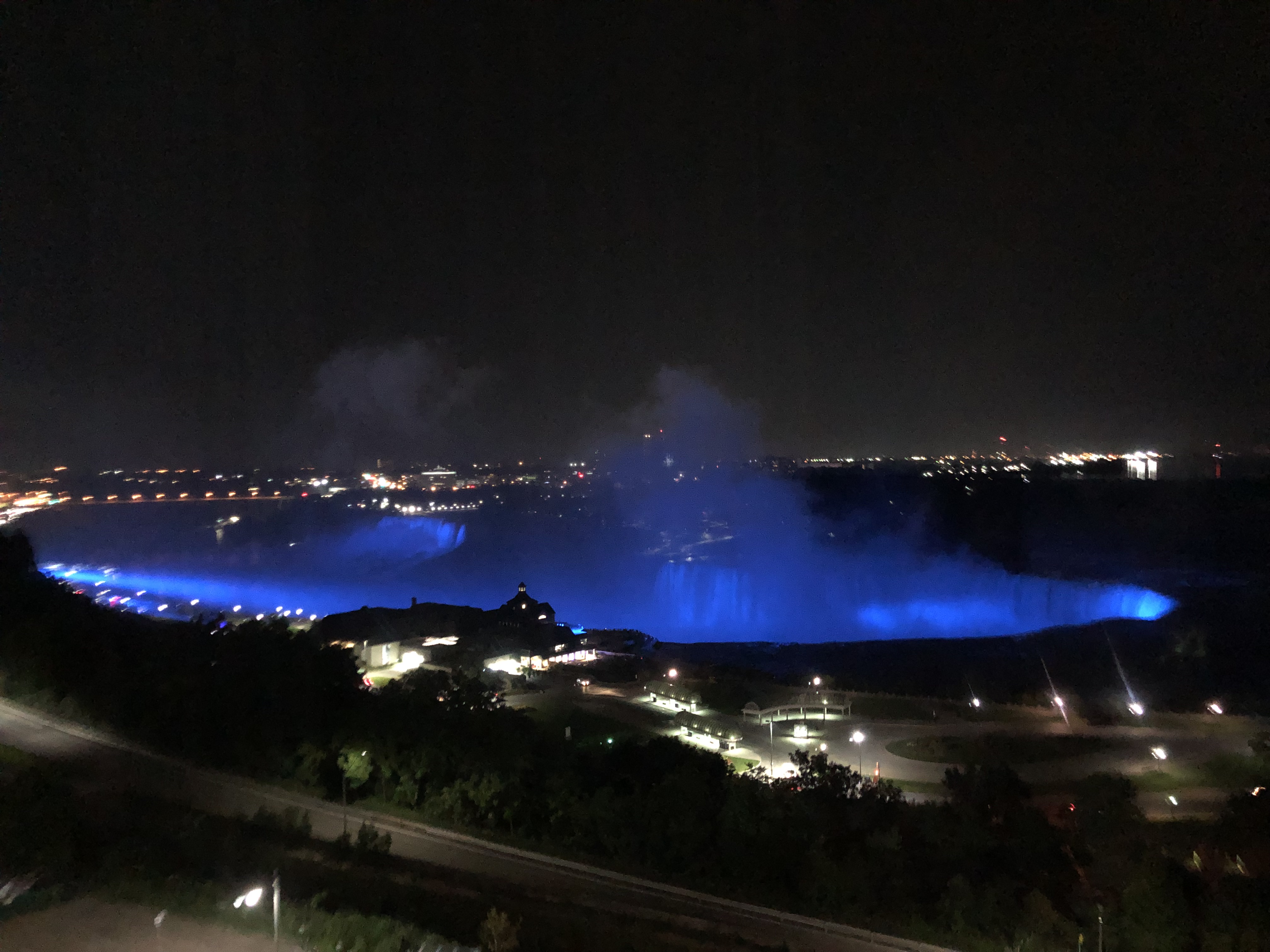 낮 시간동안은 실컷 밖에서 구경하고 돌아다녔고, 해가 지고나서는 방에서 폭포뷰만 바라보고 쉬었다. 우리는 딱히 술을 마시러 나가지도, 카지노를 즐기지도 않았기에. 게다가 이때 한창 미국에서 확진자가 많이 나던 때라 때마침 미국 관광객이 육로로 들어오는 것이 금지되었기 때문에 밤 거리가 유난히 조용했다.