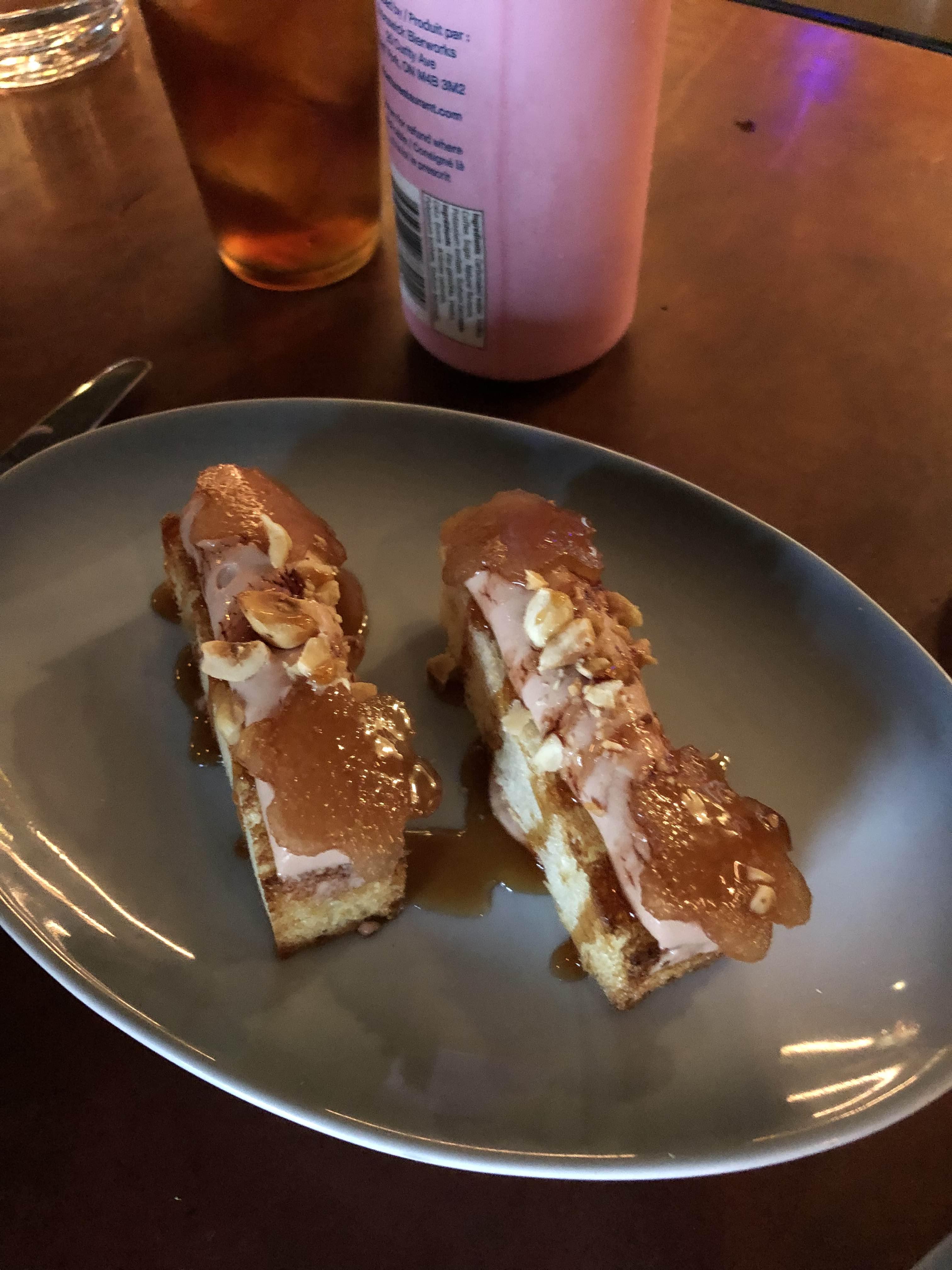 푸아그라가 올라간 토스트. 친구가 추천해서 시켜봤는데 나는 원래 푸아그라를 별로 안 좋아하는 편이라 그냥저냥 먹었고, V는 맛있었다고 함.