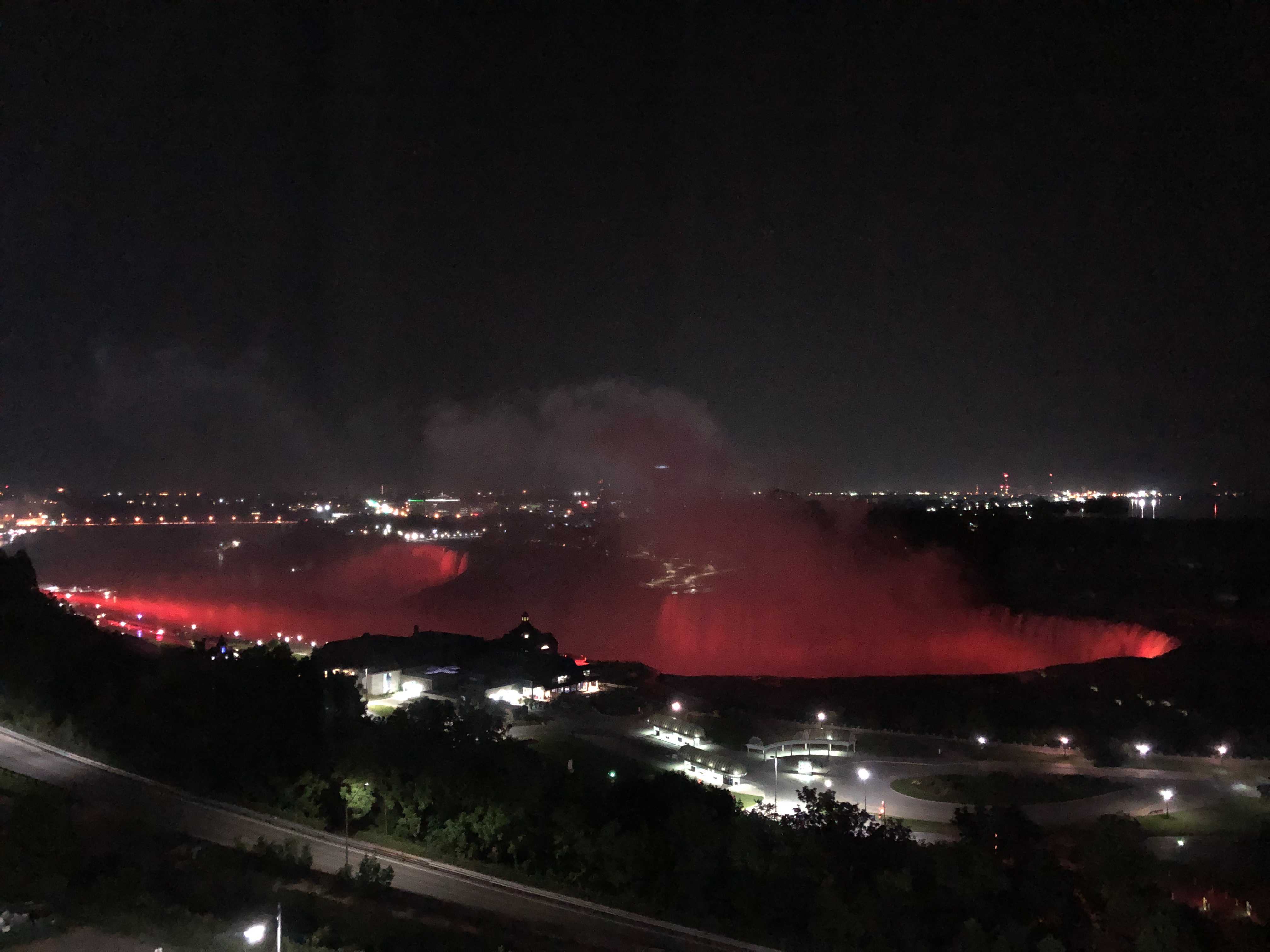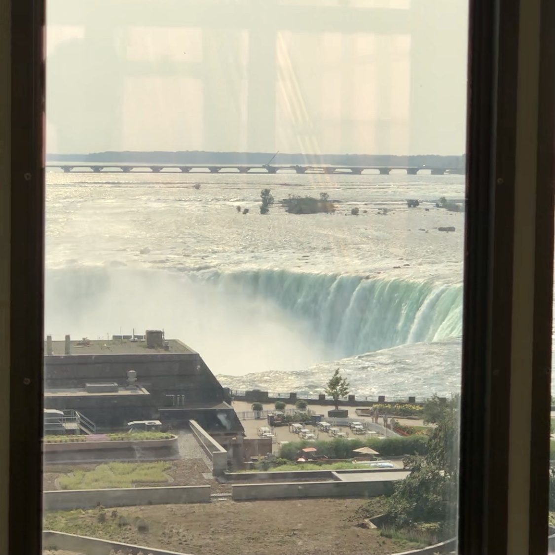 딱히 카지노에 갈 생각도 없고 밤시간에는 온전히 호텔에서 이 뷰만 바라보며 쉴 생각이었기에, 밖에서 맛있는 저녁 사 먹고 한 시간쯤 걸어 다니며 사진도 찍고 둘러보다가 9시쯤 호텔로 돌아왔다. 우리가 머문 곳은 Niagara Falls Marriott on the Falls.