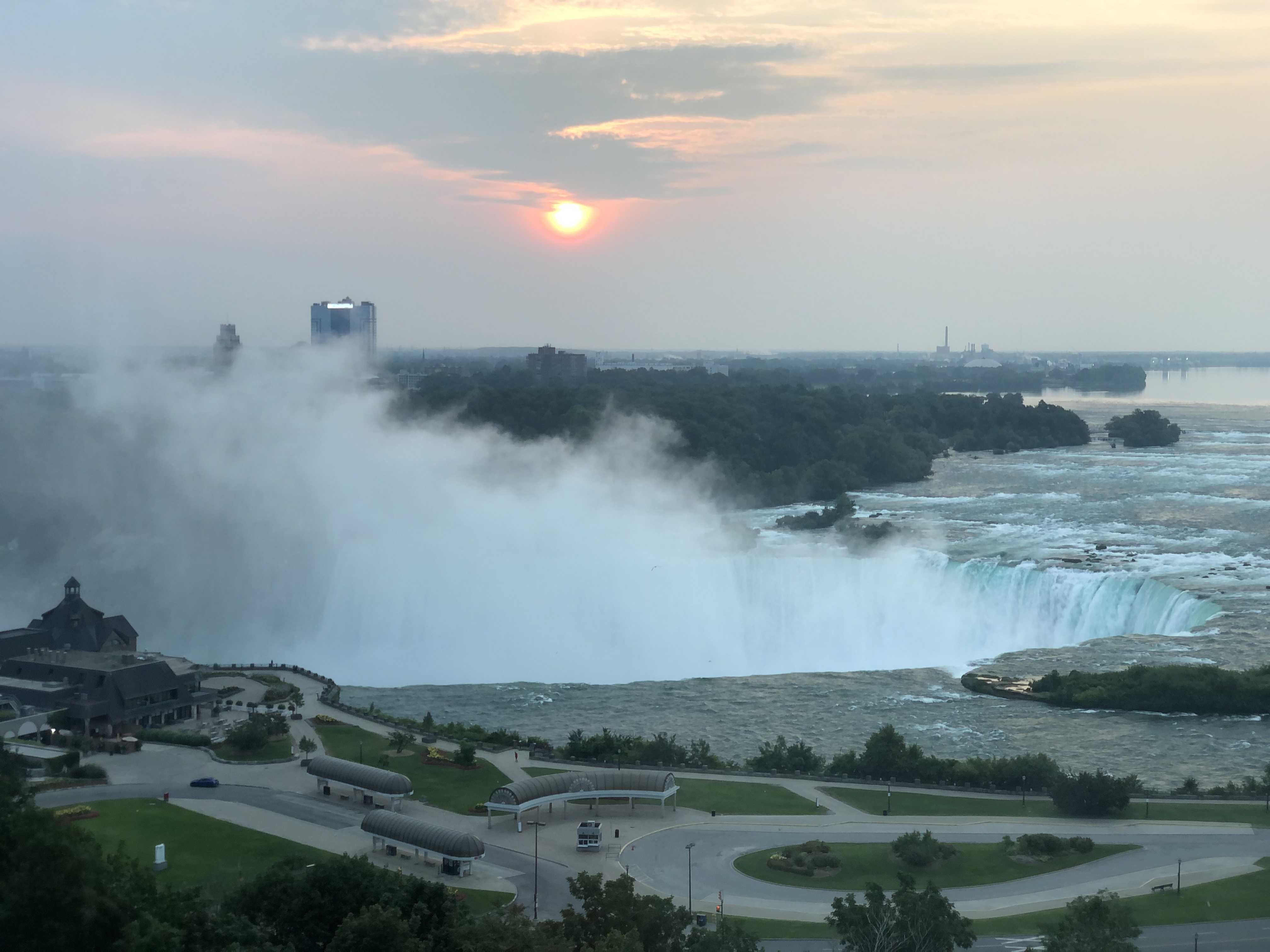 다행히 날씨가 맑은 편이라 해뜨는 게 잘 보였다. 낮에 사람이 많을 때나 밤에 보는 나이아가라와는 또 다른 매력이 있었다. 조용하고 웅장하고, 새벽시간이라 폭포에서 만들어지는 안개? 도 더 짙게 보여서 한참을 멍하니 바라봤다.