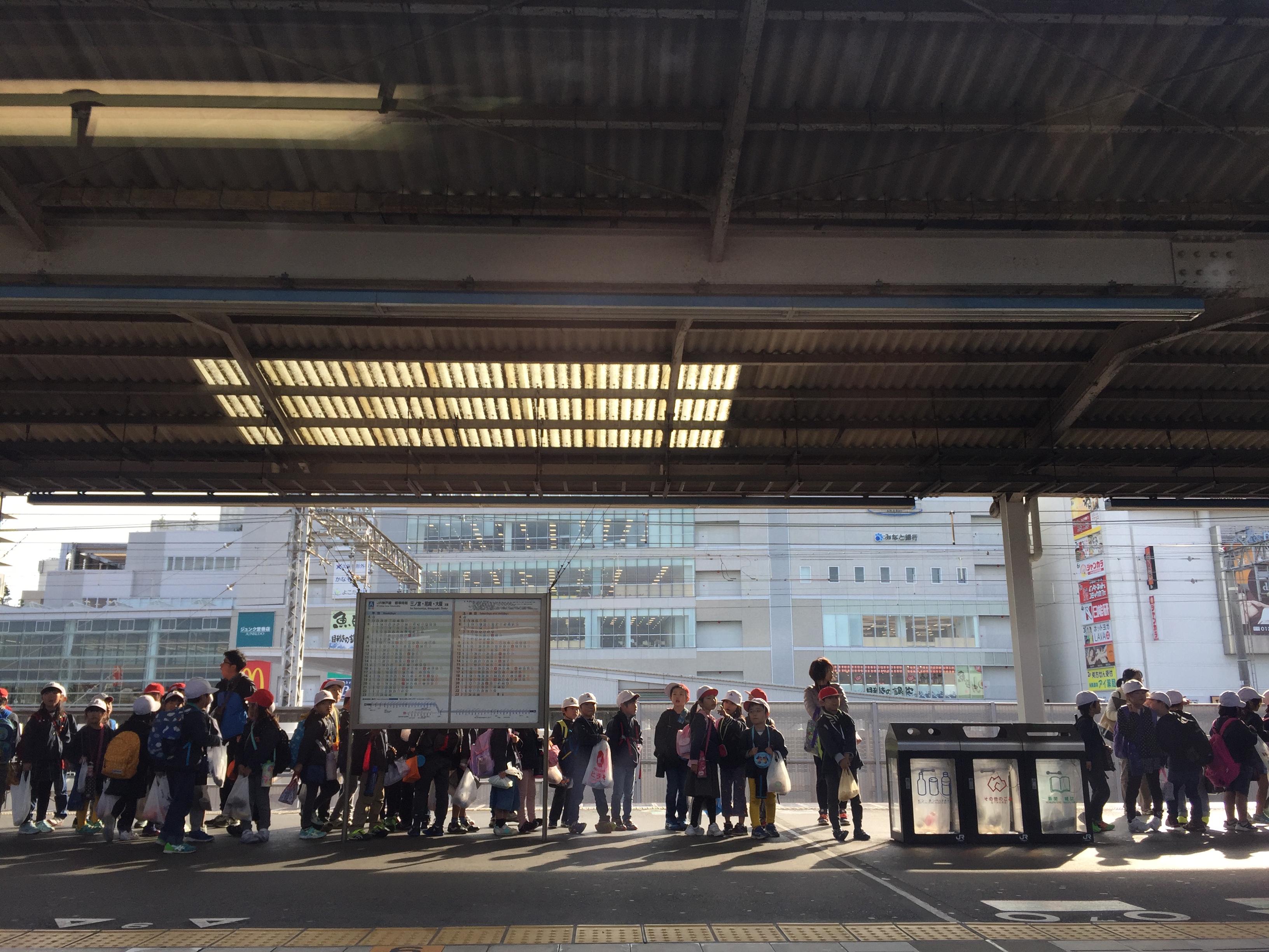 얘들도 어디로 소풍을 가는 걸로 보였는데, 다들 하나같이 비닐봉지에 점심인지를 담아서 얌전히 줄을 서 있는게 너무 귀여웠다.