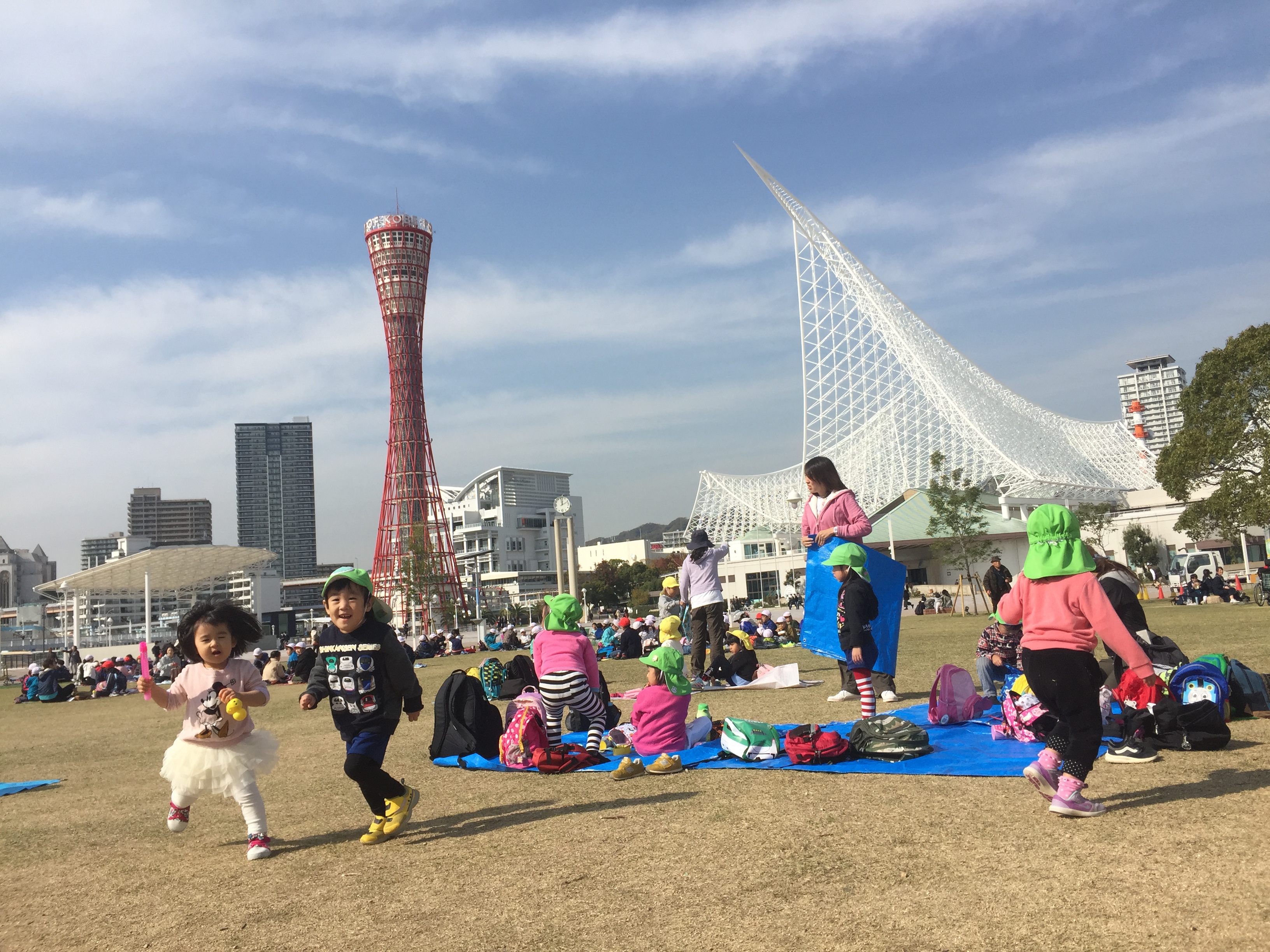 그리고 그 뒤로는 꼬꼬마들이 피크닉 중. 꺄르르 거리는 아가들 구경하느라 여기서 시간 가는 줄 모르고 지켜봤다. 평화로운 고베의 아침~
