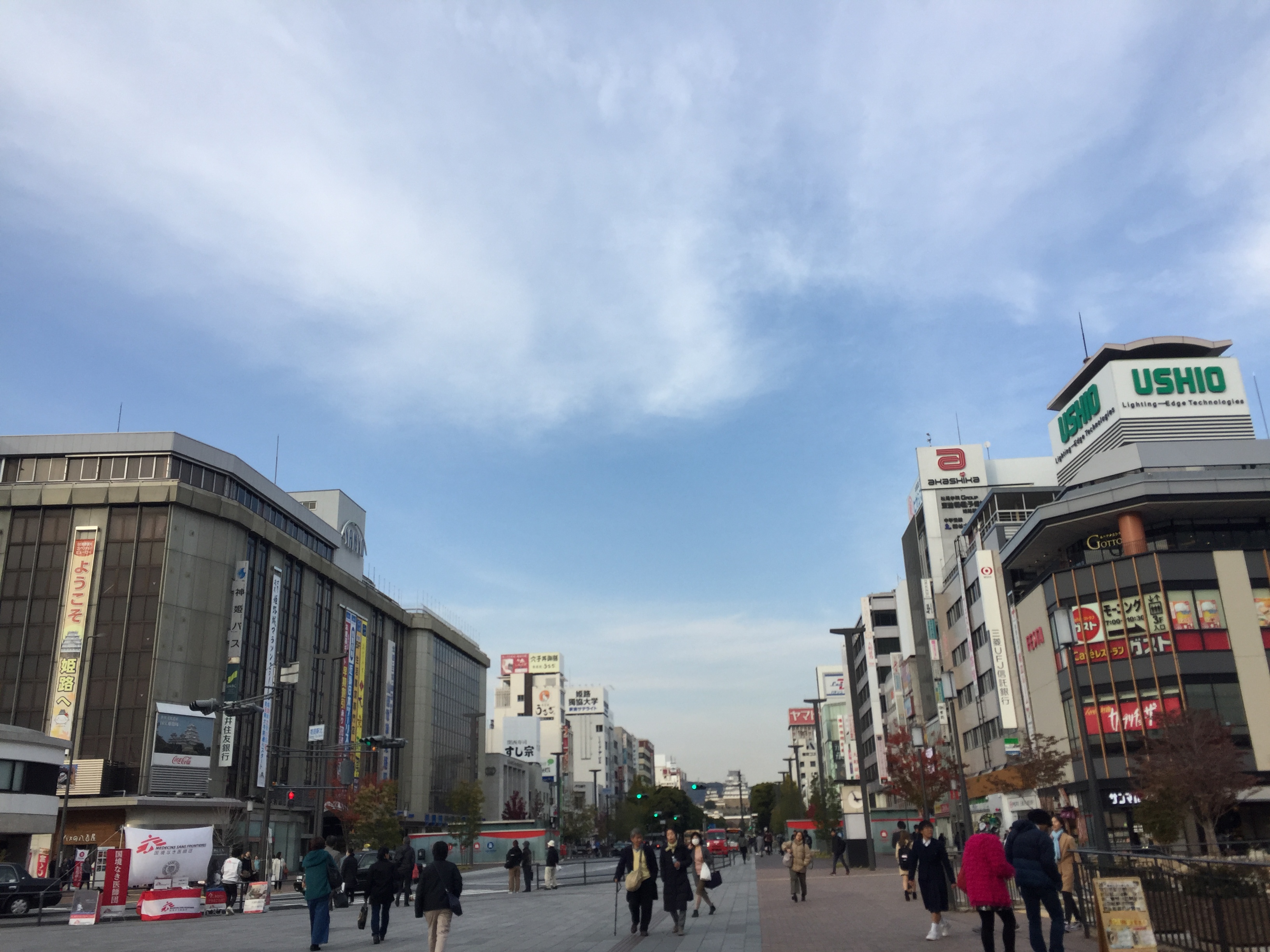 히메지역에 도착! 조용하고 한적한 동네일 줄 알았는데, 양쪽으로 빌딩들이 많아서 회사들도 꽤 있는 것 처럼 보였다. 레스토랑도 많고, 편의점에 카페에 화장품을 파는 곳들까지 나름 없는 게 없었다.