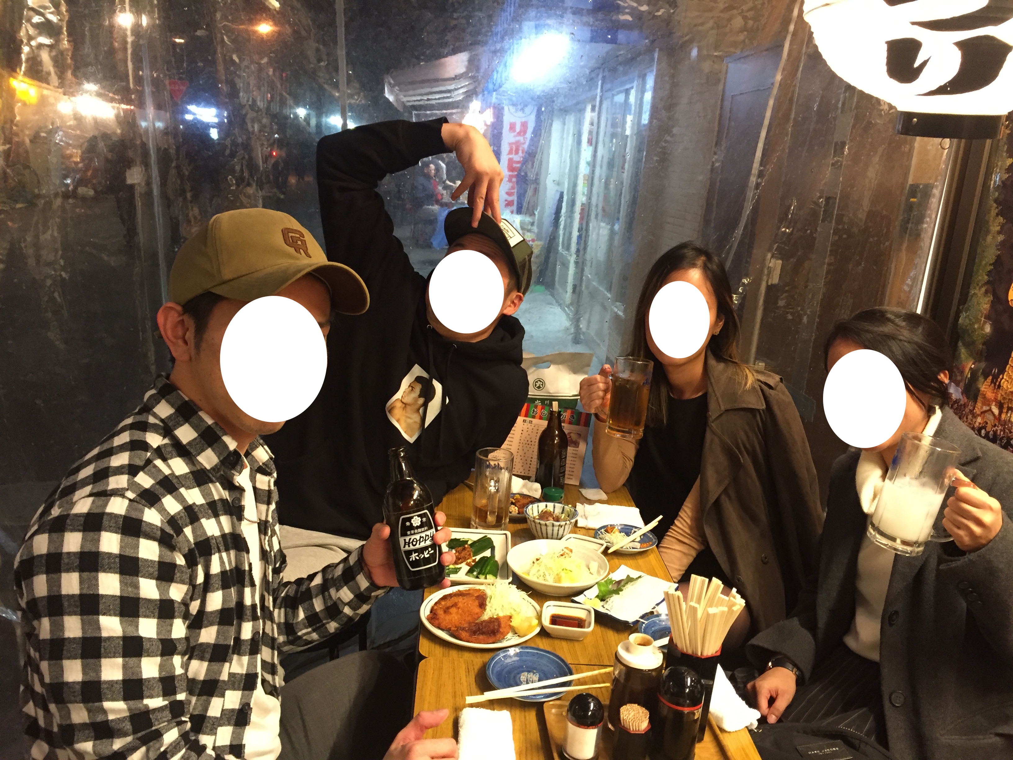 역시 일본에선 한끼에 딱 한번 많이 먹는 게 아니라 2차로 옮겨서 더 먹어야 제맛이다ㅎㅎㅎ 몬자야끼먹고 바로 2차로 근처 이자카야. 비오는 날 포장마차 같이 비닐로 가려진 야외 테이블에서 마시는 맥주는 꿀맛이었다.