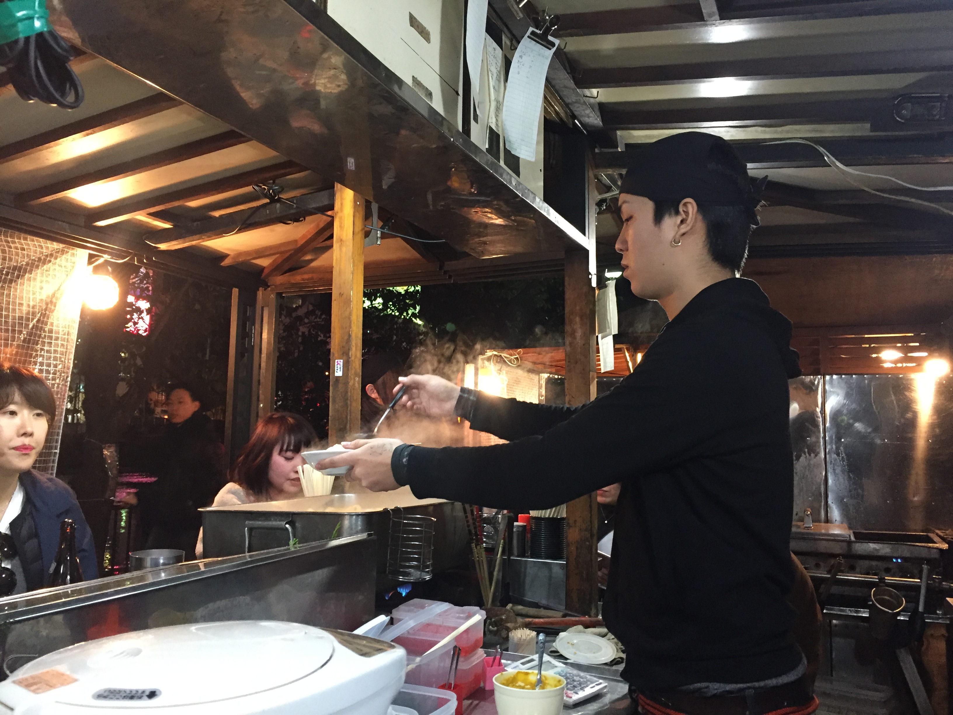후루룩 마신 술에 기분도 좋고, 이 풍경을 오랜만에 보니 옛날 생각도 나고 해서 사진을 찍고 있는 나와 그런 나를 찍어준 Y ㅎㅎㅎ 그나저나 여기 포장마차거리를 만든 인물을 주인공으로 한 일본 드라마가 있었는데... 뭐였더라...?