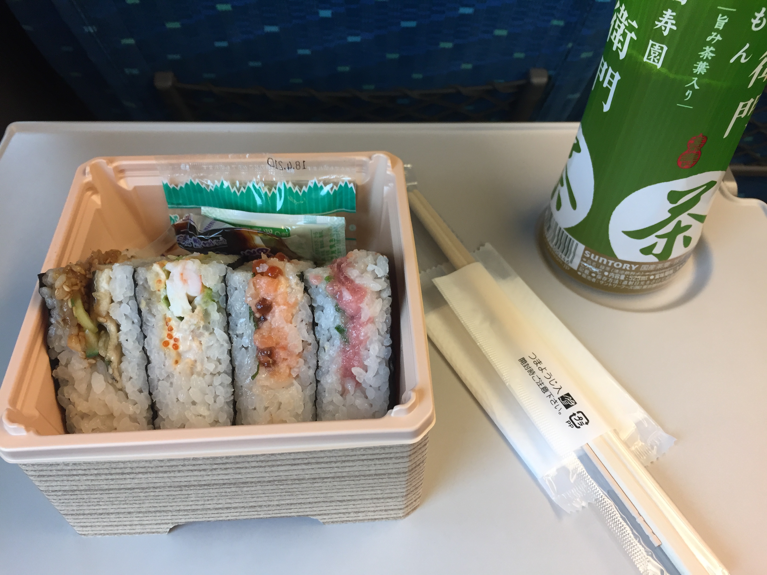 어김없이 시나가와역에서 고른 아침 겸 점심. 지난번 고베 여행을 갈 때 너무 화려하고 푸짐한 벤토를 골랐더니 너무 거창한 느낌이라 이번엔 아기자기 너무 예쁜 오니기리랄까 스시 샌드위치 느낌의 벤토를 골랐다. 먹기 아까울 정도로 예뻤다.
