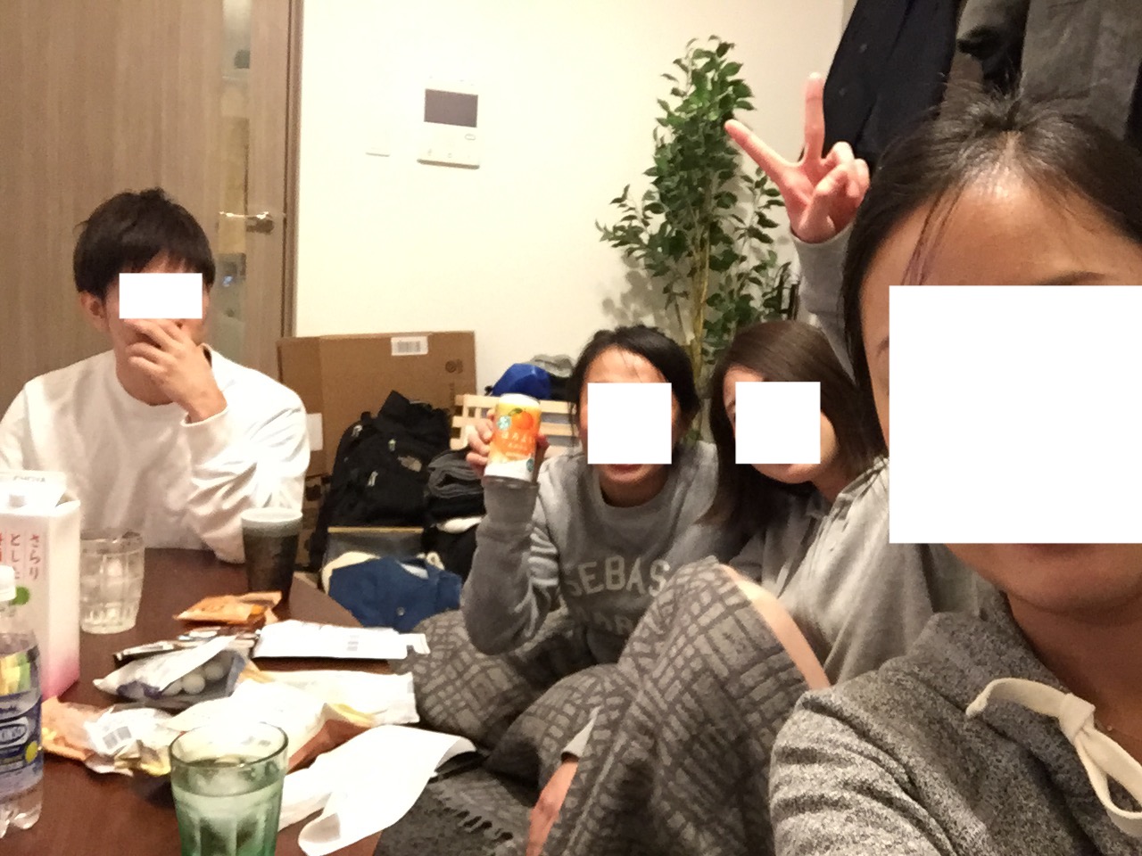 M은 집이 나리타라 도쿄에서 자고 가는 게 편하고, E는 요코하마라 H집에서는 금방이었지만 막차시간 전에 돌아가기 아쉬워서 근처 편의점에서 칫솔 같은 것만 사서 결국 이렇게 다들 자고 갔다!