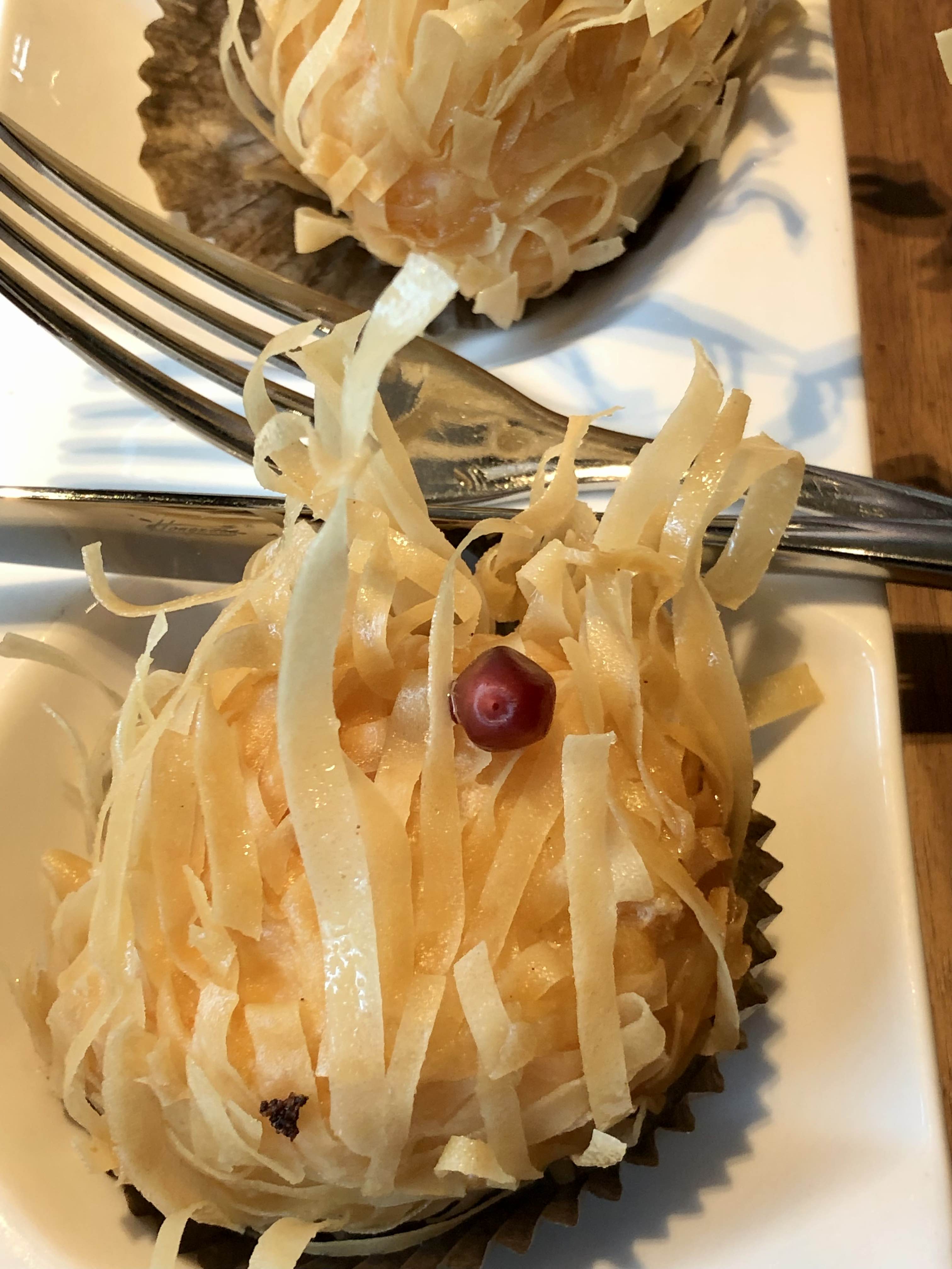예쁘게 튀겨져서 나온 크리스피 새우 크로켓 with 푸아그라. 예상했던 것보다 크기가 커서 놀랐다. 이것도 간 새우로 만든거라 물론 맛있었지만 푸아그라를 좋아하지 않는 나로서는 가운데 조금 들어가 있던 푸아그라 향이 거슬려서 그 부분만 빼고 먹었다. 참고로 위에 올라간 건 석류.