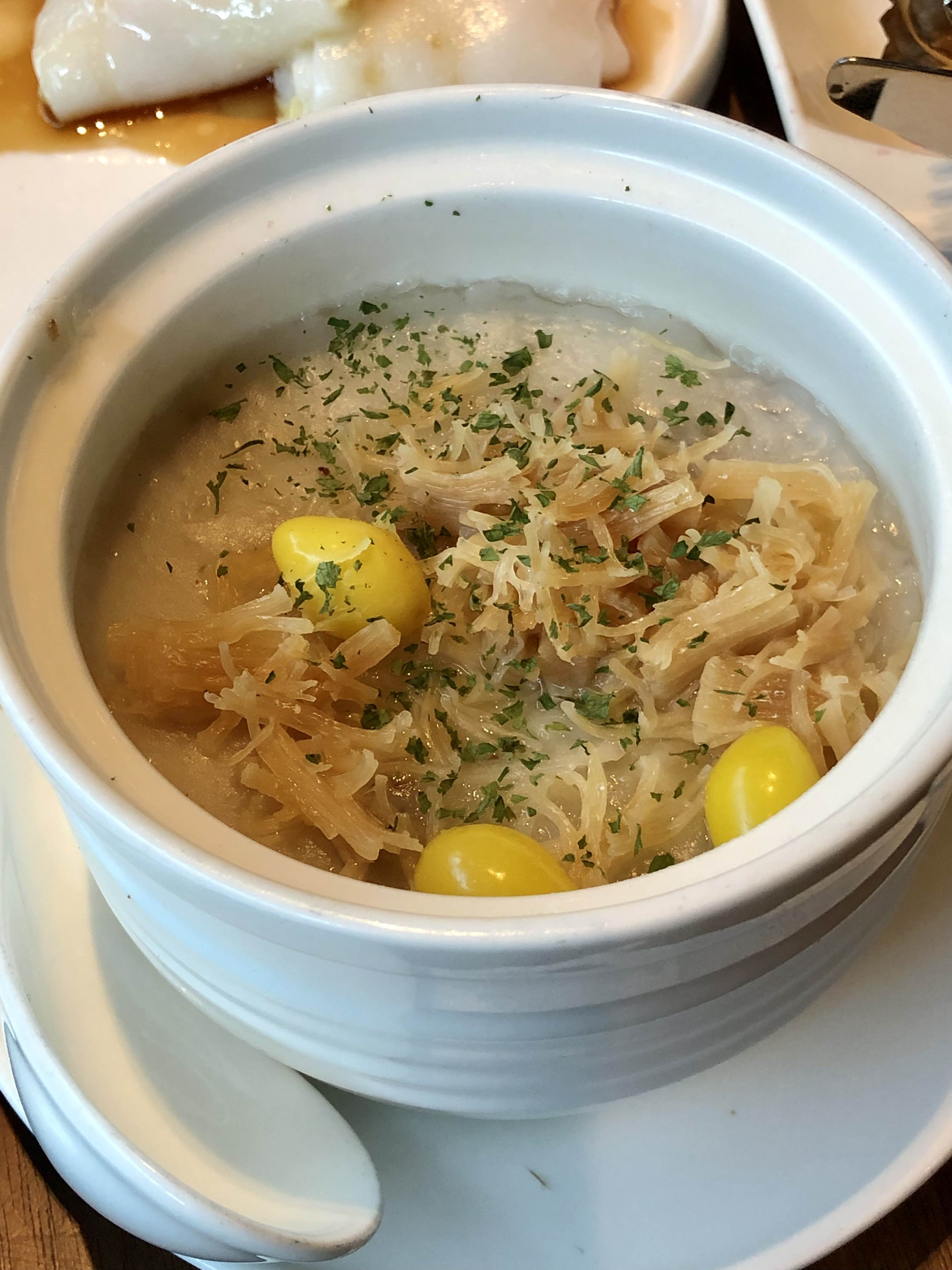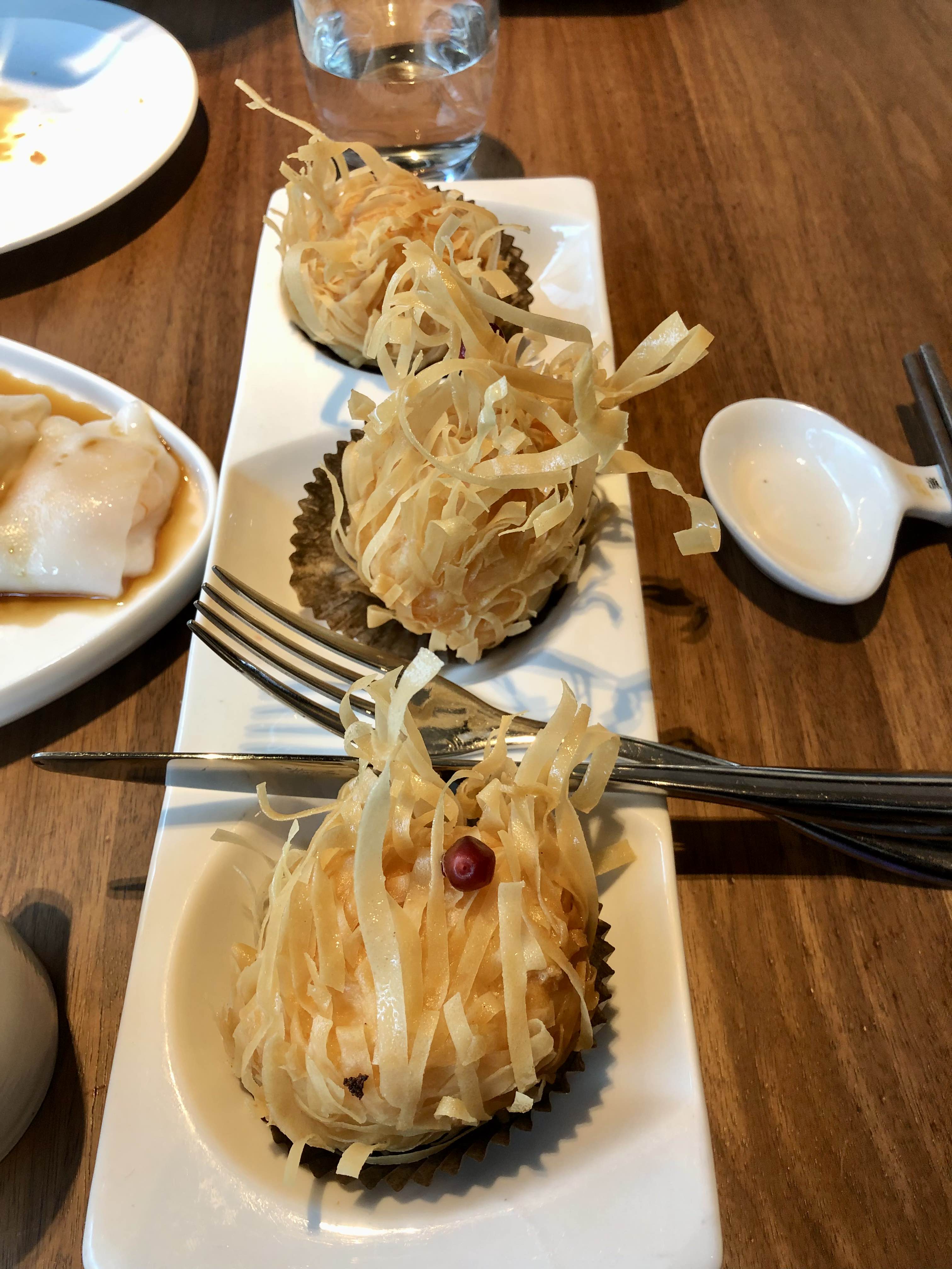 와일드 새우가 들어간 쌀로 만든 누들 롤. 간이 아주 약하게만 들어가 있어서 같이 나오는 간장을 듬뿍 뿌려 먹었는데 다른 간이 센 딤섬들 먹기 전에 이것부터 먹고 시작하는 게 좋다.