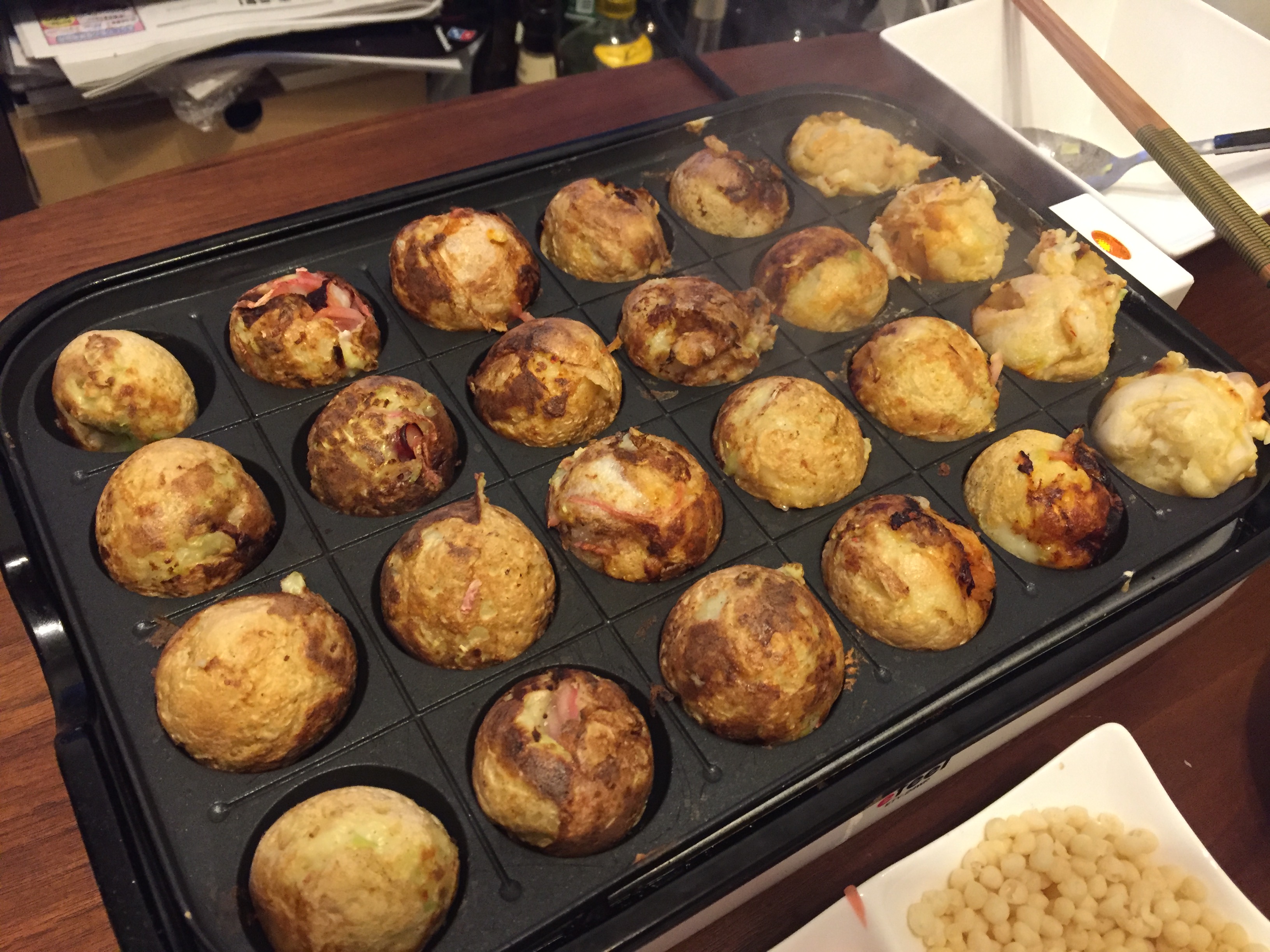 나는 옆에서 계속 사진찍고 맥주 마시고 놀았더니 가운데 있는 타코야키들은 살짝 타버림.