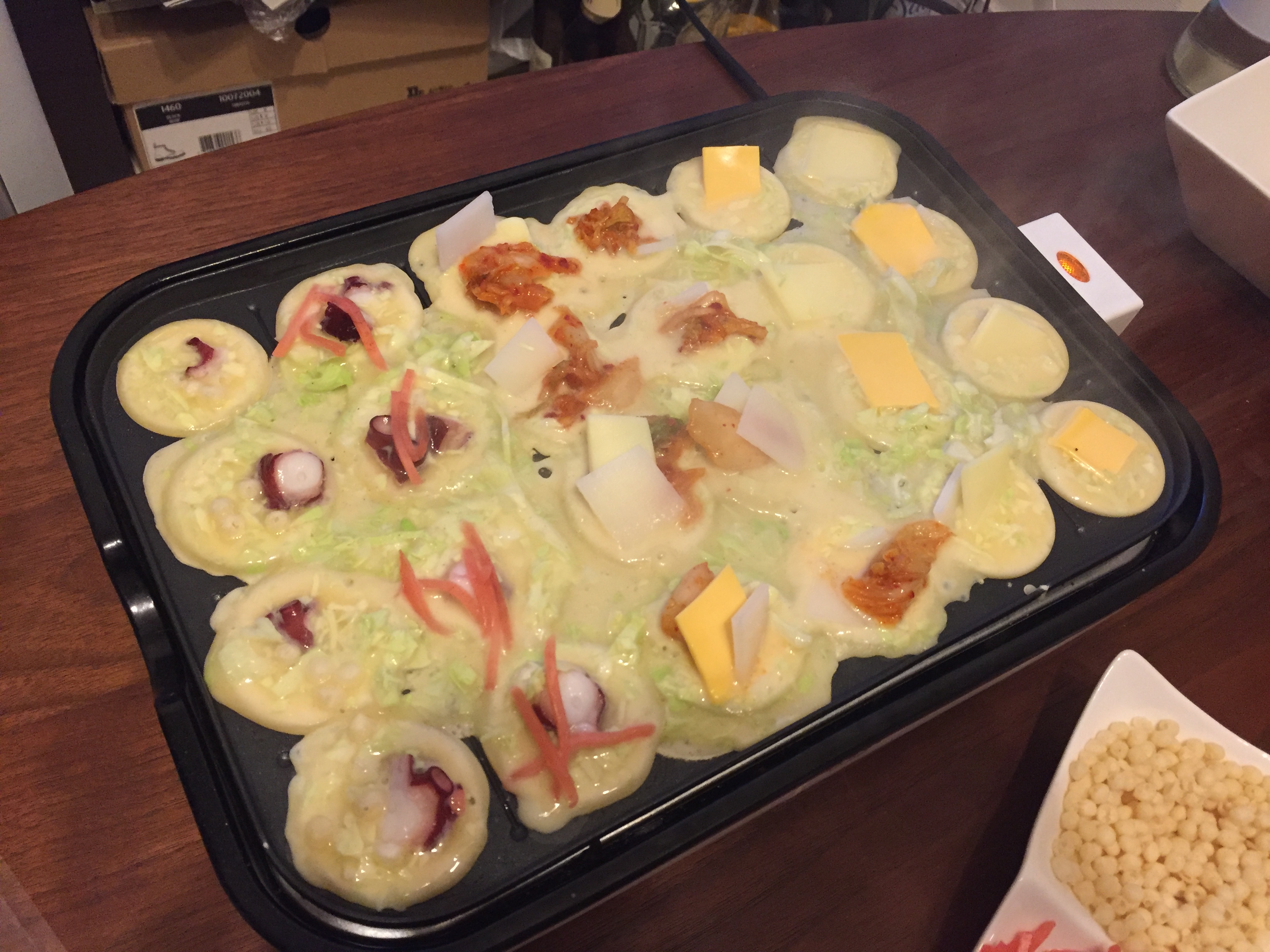 집에 오는길에 간단하게 장을 봐서 저녁엔 타코야키파티. 준비하는 게 귀찮을 줄 알았는데, H 혼자서 뚝딱 반죽을 만들고 사온 재료들을 꺼내 준비했다. 의외로 간단하네?