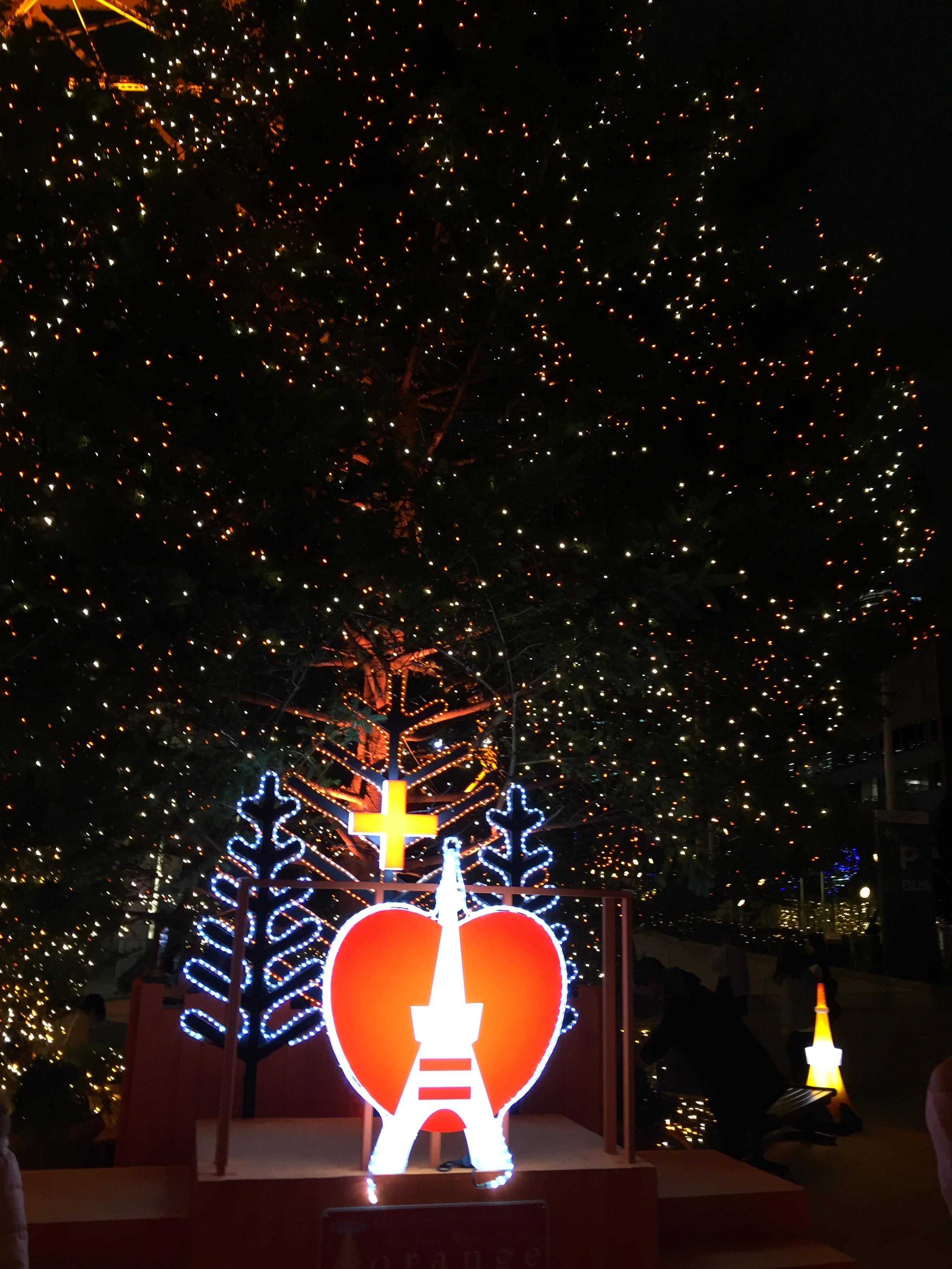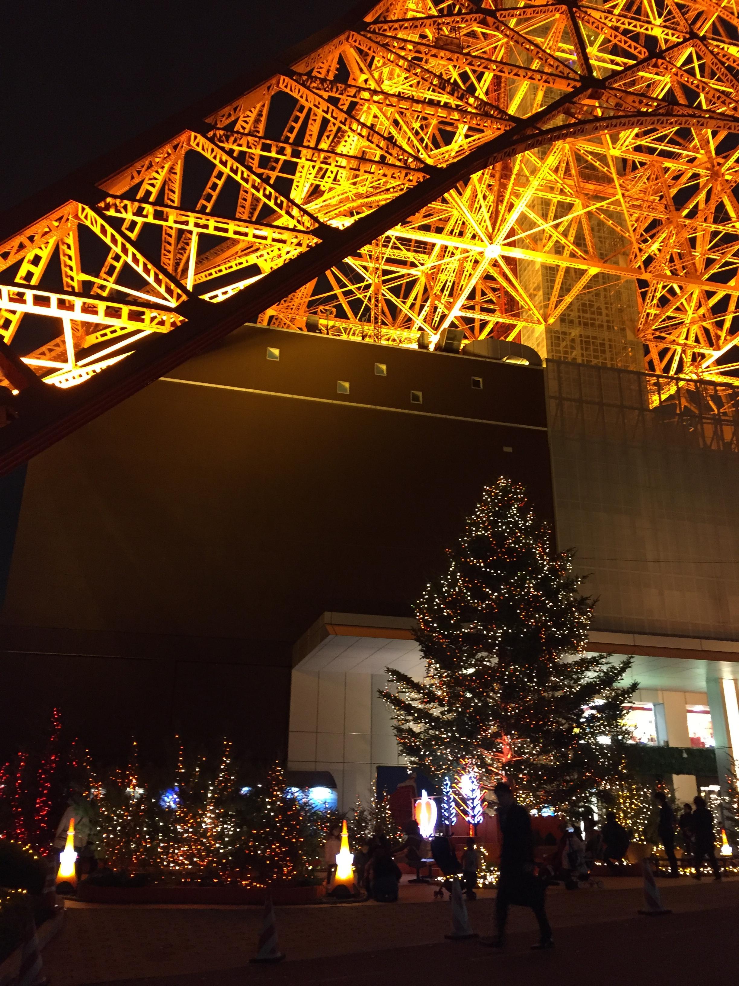 크리스마스가 다가오고 있어서 타워 밖 1층에는 아기자기한 트리들이 불을 밝히고 있었다. 도쿄타워를 가까이에서 보는 것만이 목표였던 우리는 안에 들어가보지는 않았고(아니다, 시간이 너무 늦어서 입장이 안 됐던가?), 여기서 사진도 많이 찍고 좋은 시간을 보냈다.