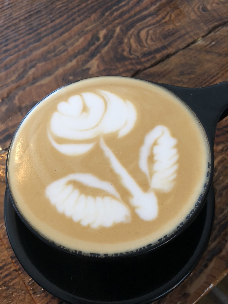 한가한 날에 들렀더니 이렇게 예쁜 꽃을 그려줘서 커피를 받으면 늘 기분이 좋다.