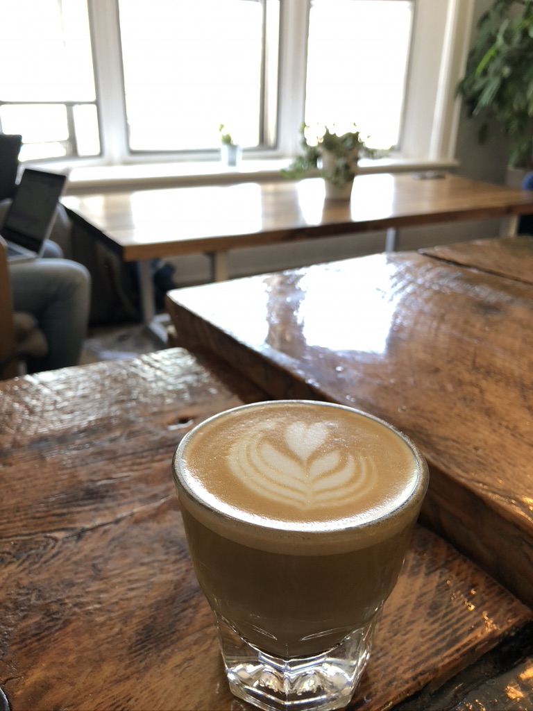 한동안 Cortado에 빠져있을 때라 이날도 어김없이 Cortado. 한쪽이 비뚤어진 것도 예뻐서 찍어뒀다.