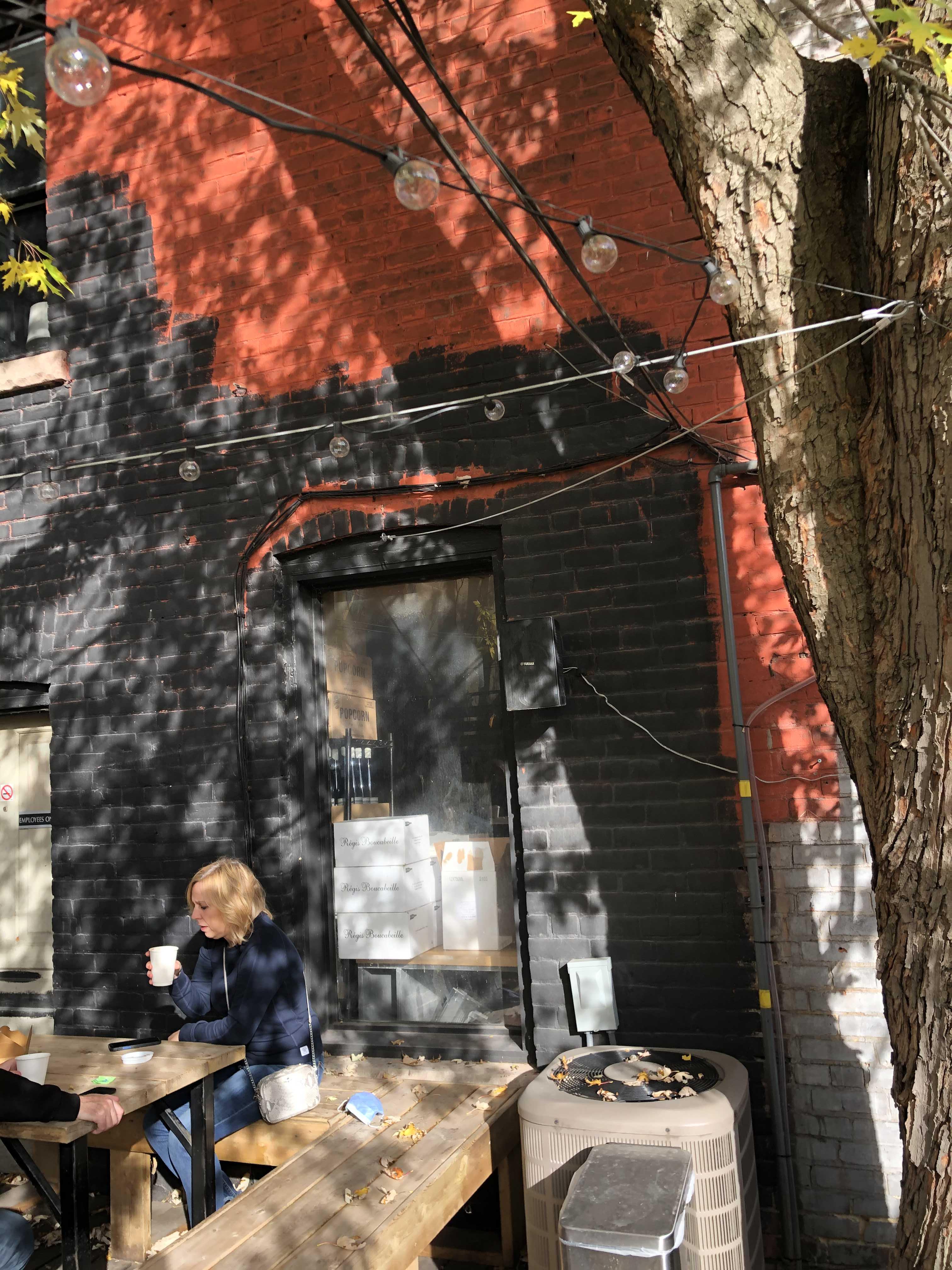 작년에 코로나로 모든 가게가 다 문을 닫았다가 가을쯤 페디오가 열렸다는 소식을 듣고 다녀왔다. 사진에 보이는 손님을 보면 알 수 있듯이 자켓을 입어야 할 날씨였지만 실내에 앉을 수 없기에 이렇게 밖에서 커피를 마셨는데, 햇볕이 너무 좋아서 조금 쌀쌀했지만 괜찮았다.