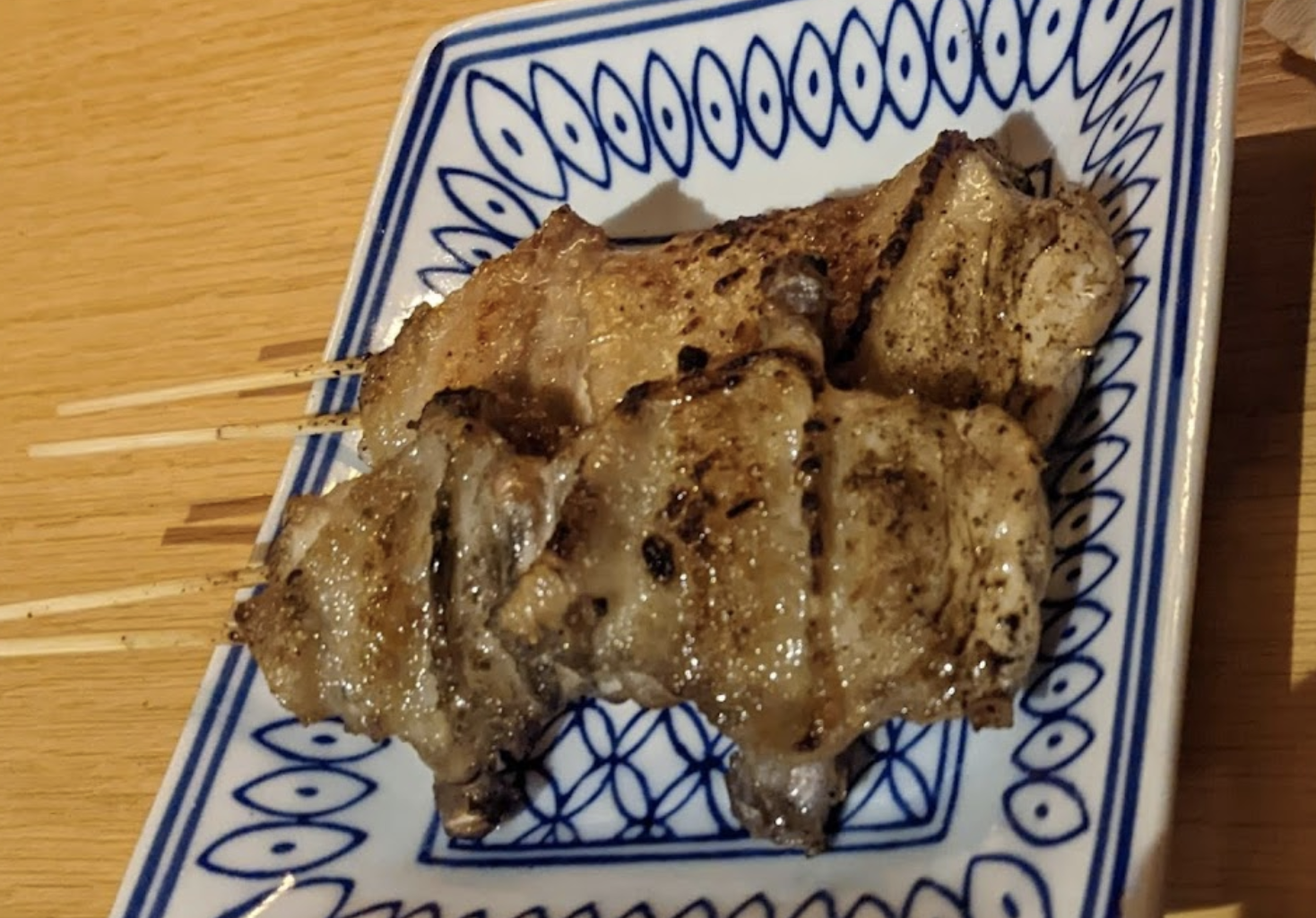 메뉴가 다양하진 않았는데 그나마 가장 종류가 많았던 건 치킨류... 우리는 이거 말고 대파랑 같이 나오는 Negima로 시켰는데 맛있었음. 아, 그리고 어떤 메뉴들은 시킬 때 소금이나 소스 두가지 중에 선택할 수 있었다.