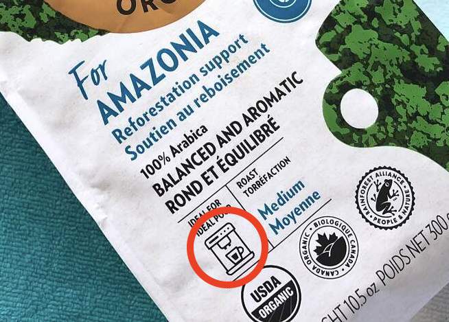 지난번에 아마조니아 샀을 땐 몰랐는데, 이렇게 딱 정면에 Ideal for 라고 에스프레소 뽑기에 좋은지, 드립 커피로 만들어 마시기 좋은지가 친절하게 그림이 들어가 있었다!