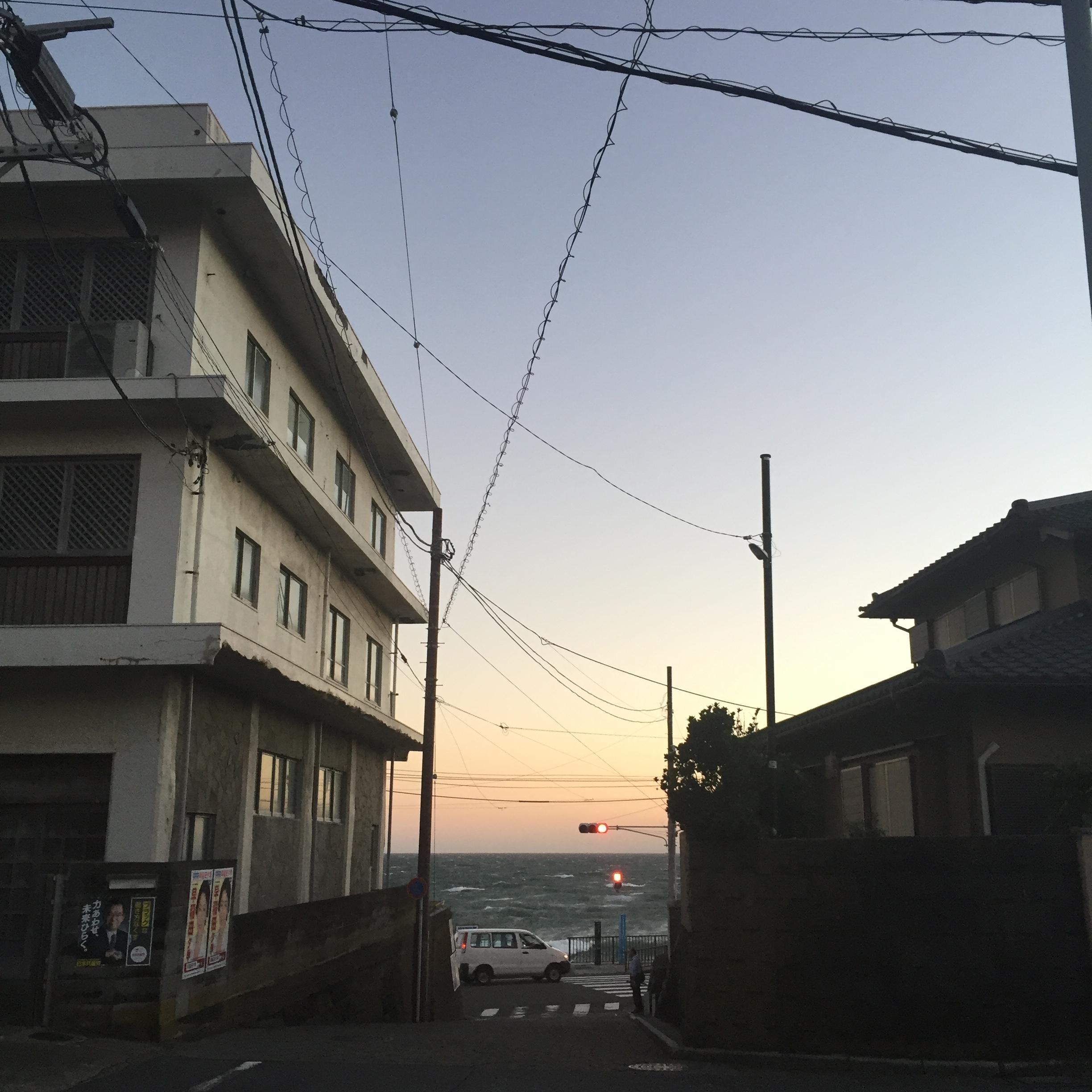 카마쿠라에서 기차를 타고 일몰을 구경하기 좋다는 바닷가로 이동했다. 정말 오래전인데도 사진들을 보니 그때의 느낌이 그대로 떠오른다. 조용하고 한적한 바닷가에 우리 셋만 달랑 내렸는데, 나는 주택들 사이로 나있는 이 좁은 기찻길도 너무 신기해서 사진을 막 찍어댔고, 이런 풍경이 익숙한 H와 K는 별걸 다 좋아하는 나를 보며 흐뭇해했다. 여기가 아마 슬램덩크의 배경이 된 그 동네 근처였던 것 같다.