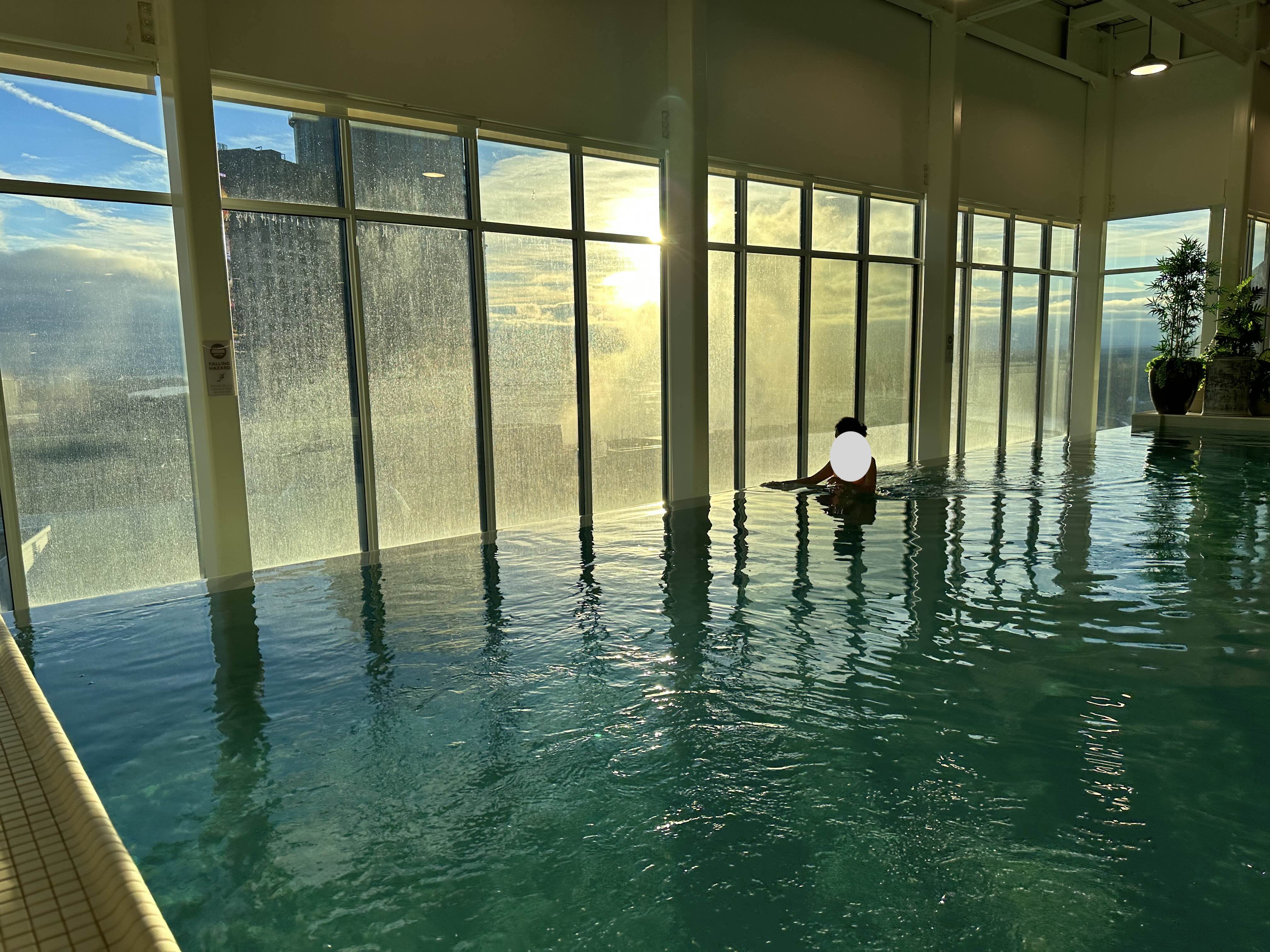 전날 비가온 탓인지, 원래 이 호텔은 유리창 청소를 잘 안하는건지 지저분해서 사진은 잘 안나왔지만 그래도 다른 이용객 없이 우리만 한시간 내내 이 넓은 수영장을 대여한 것처럼 쓸 수 있어서 진짜 좋았다. 호텔 룸에서 보낸 시간보다 이 수영장에서 보낸 한시간이 더 만족스러웠을 정도.