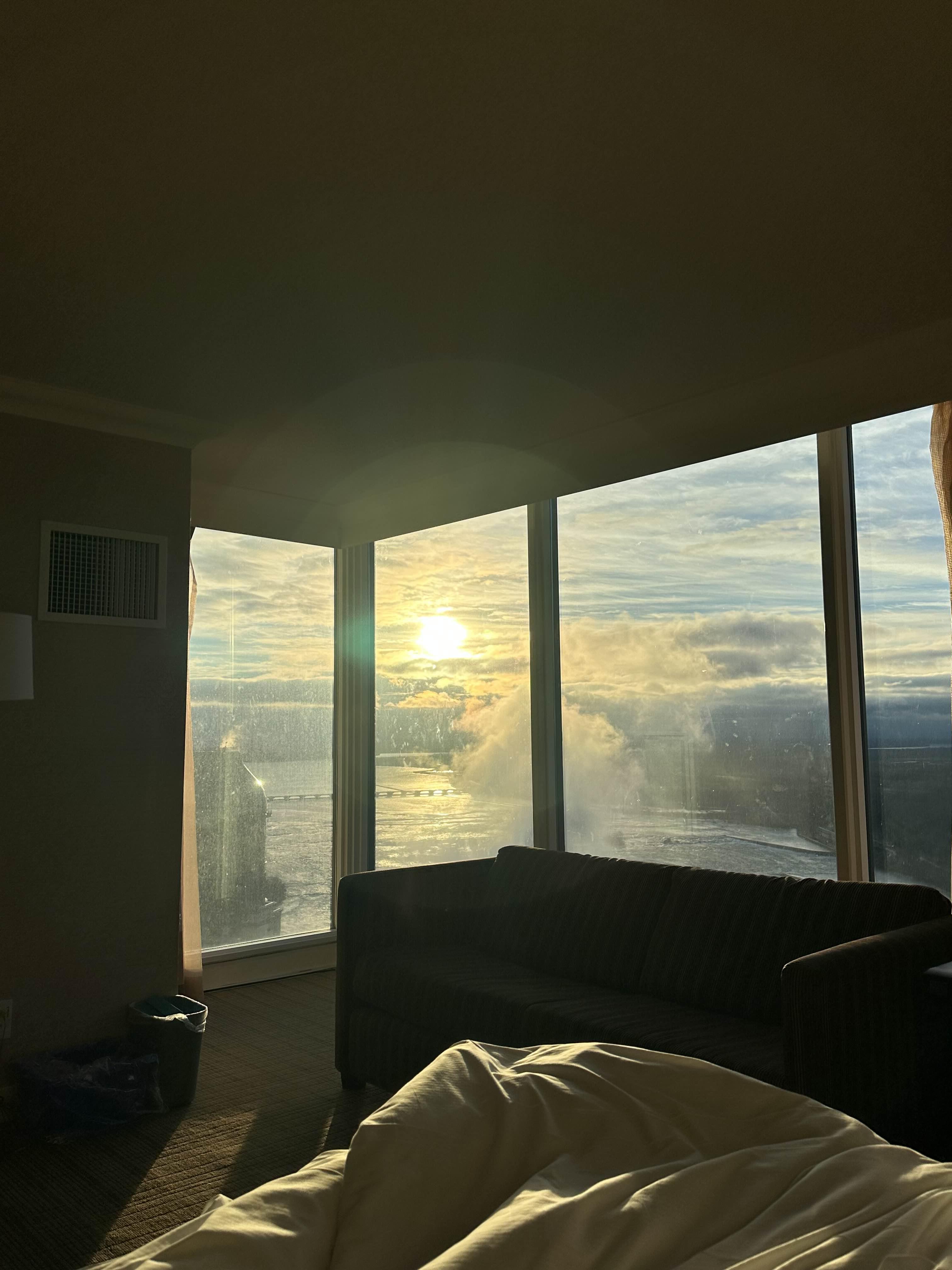 참고로 우리 룸은 정면 왼쪽으론 US 폭포 뷰, 정면 오른쪽으론 캐나다 폭포 뷰, 침대에서 화장실 가는 쪽으로는 시티뷰까지 살짝 보여서 모든 뷰를 다 감상할 수 있었다. 시티 쪽은 워낙 볼게 없기 때문에 없어도 상관없었지만ㅎㅎㅎ