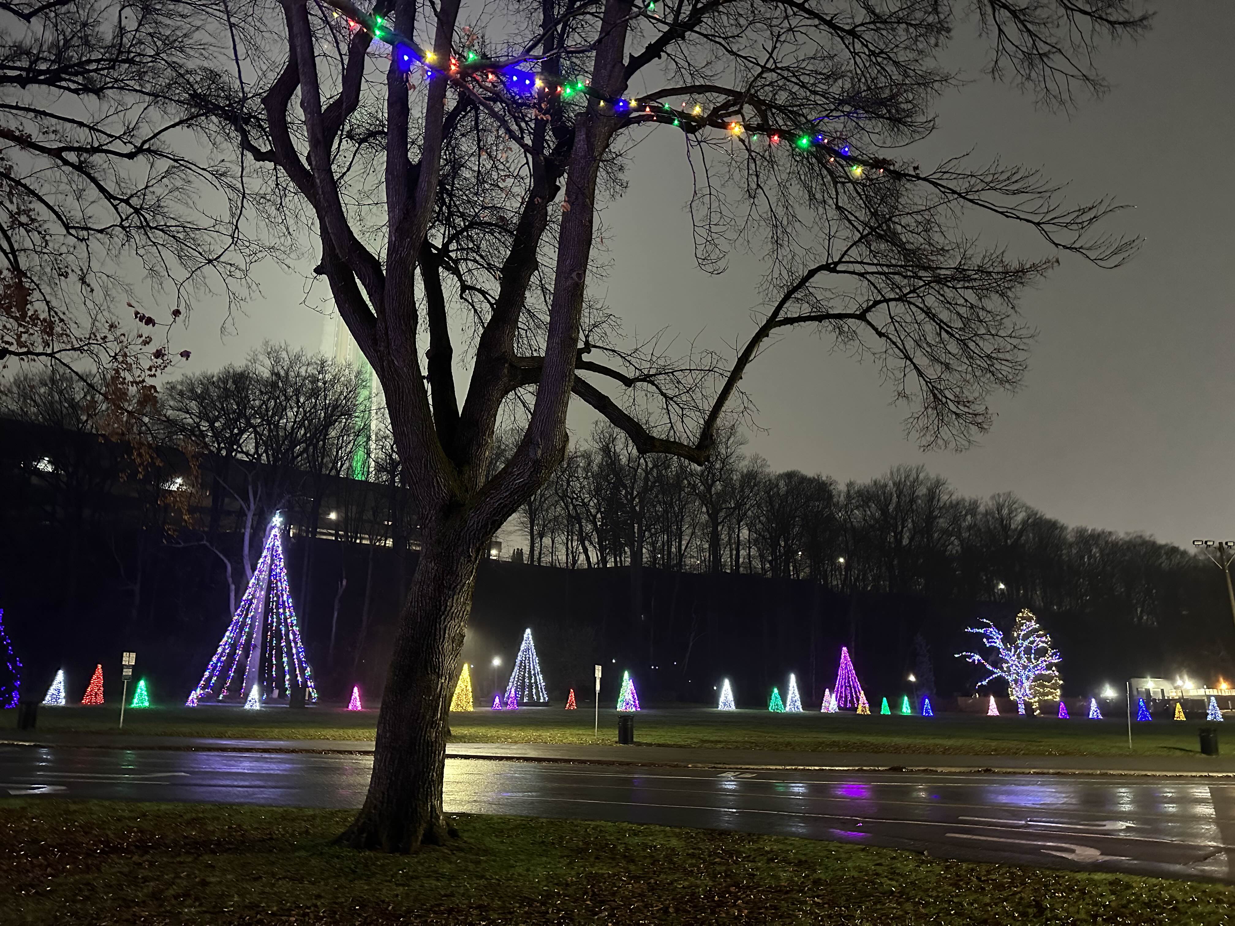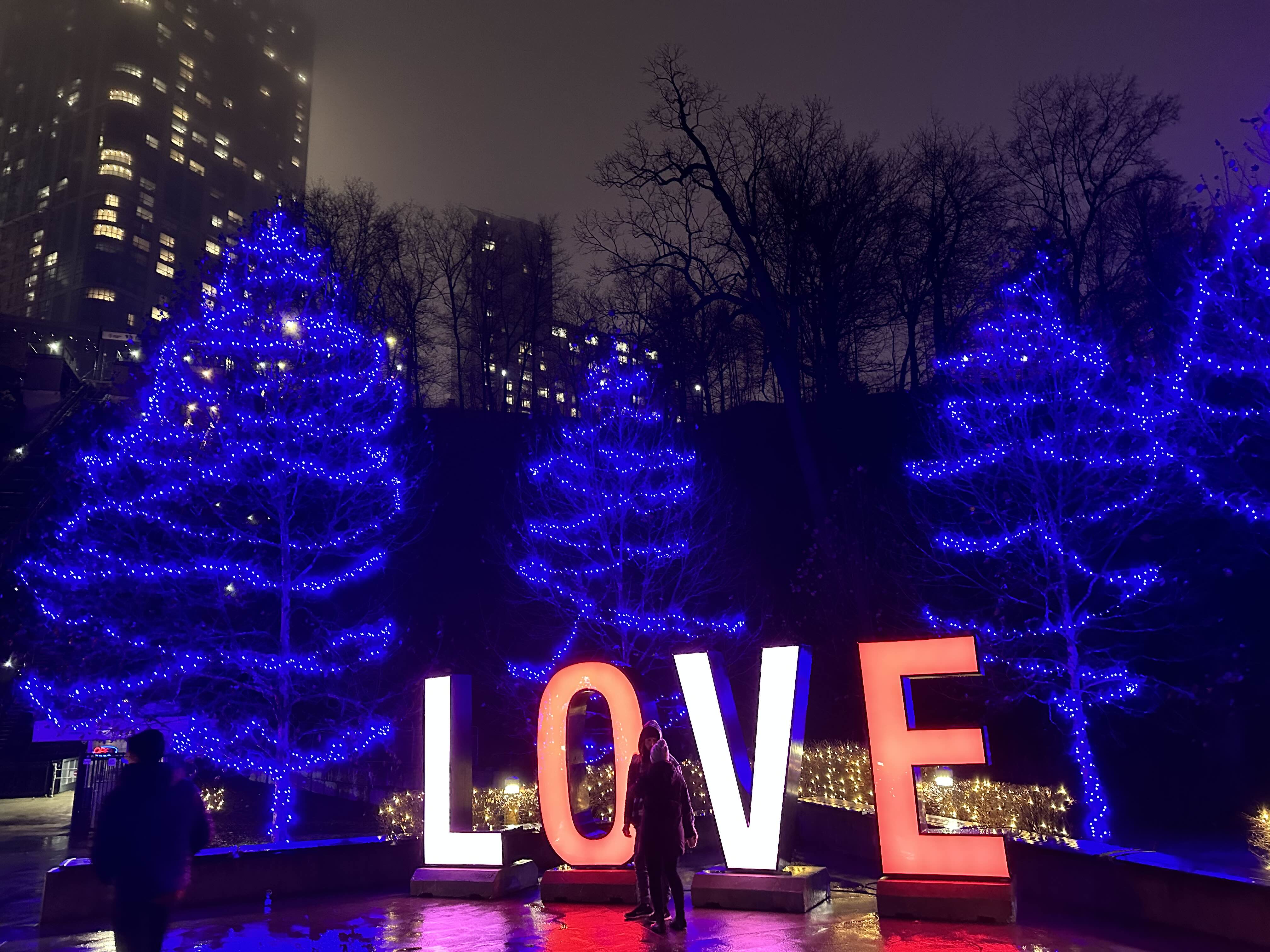 그래서 그냥 방에서 쉬고싶어하는 V를 데리고 직접 폭포까지 걸어가서 보기로ㅎㅎㅎㅎㅎ 덕분에 로비에서는 뒷통수만 보였던 크리스마스 트리도 가까이에서 보고