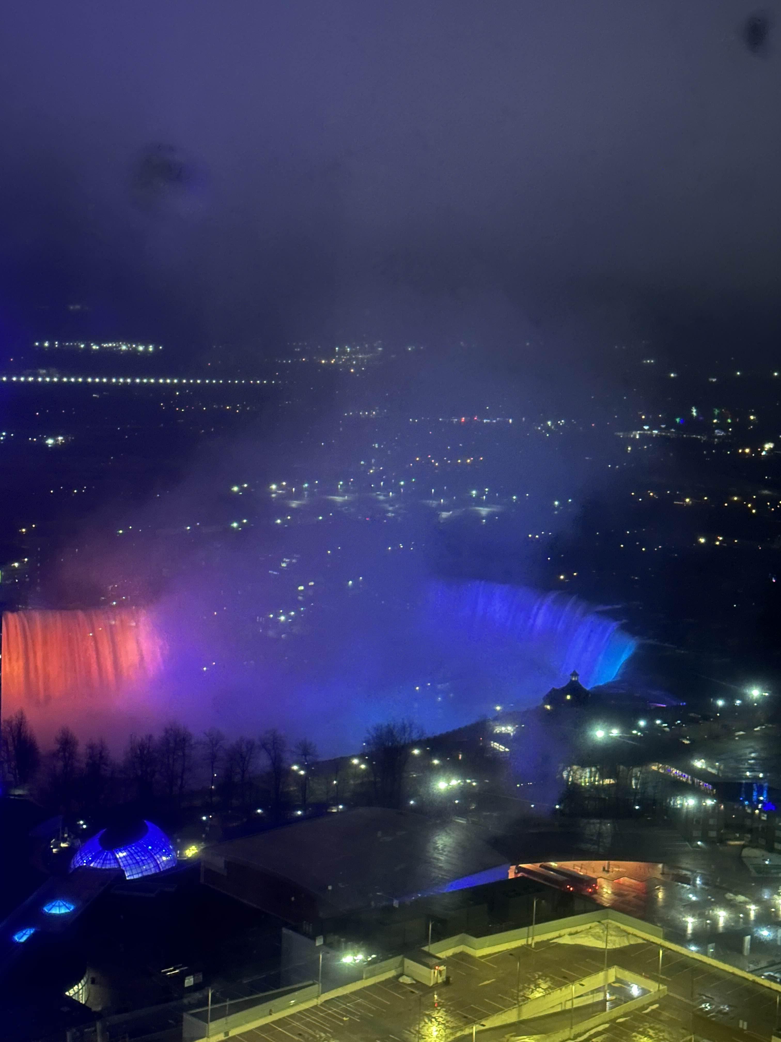 바깥 뷰 구경하며 잠이 들었다. 우리가 머문 층은 42층으로 고층이었지만, 확실히 폭포를 더 가까이에서 보기에는 엠버씨 힐튼이 더 가깝고 좋을 것 같다. 다만 엠버씨가 더 오래되어서 시설이 어떨지는 모르겠다;; V도 엠버씨랑 고민하다 Fallsview가 그나마 시설이 더 나을 것 같아서 여기로 예약했다고 한다.