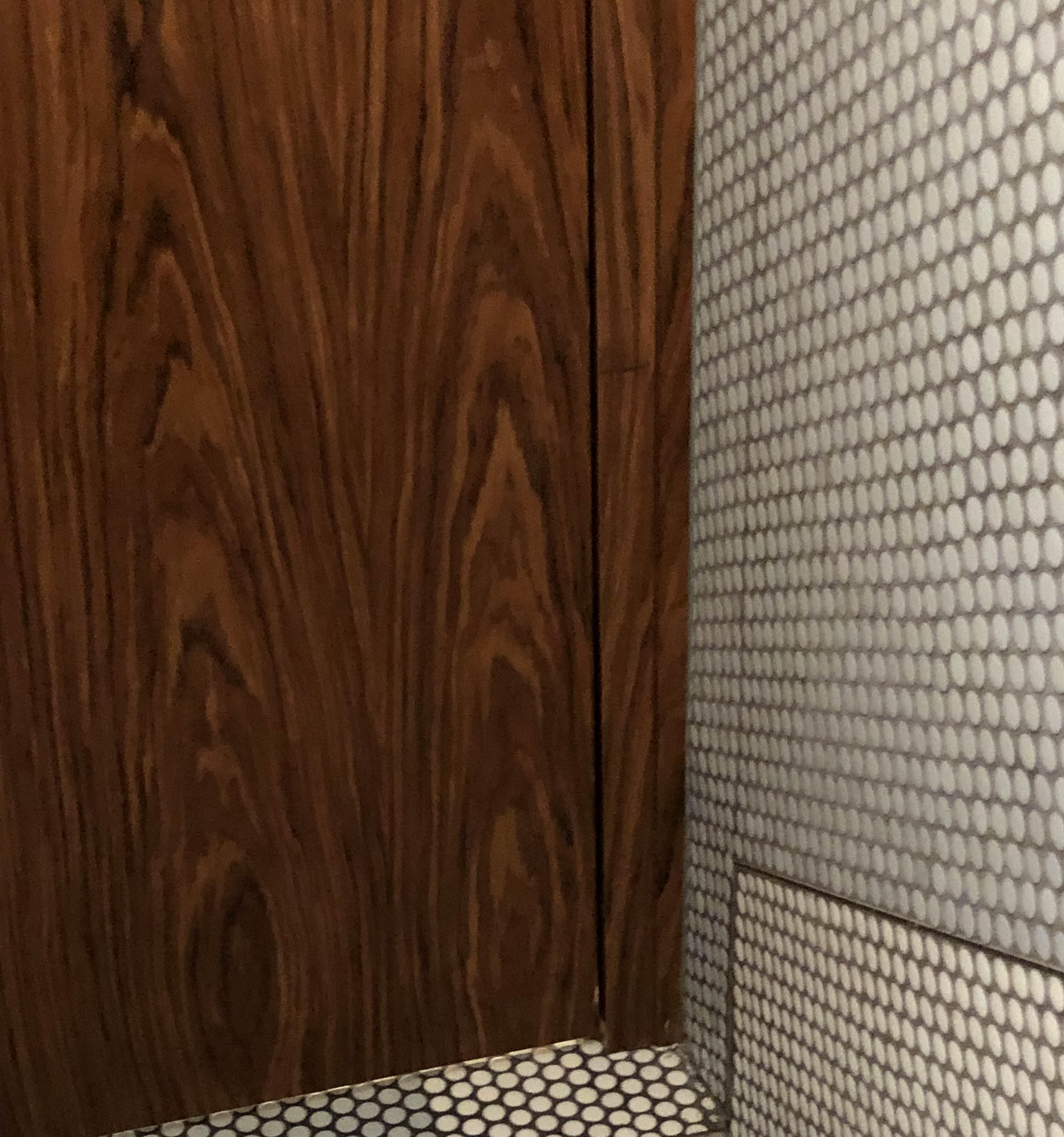 심지어 화장실에 가서도 타일과 월넛 컬러의 문에 감탄에 감탄을 하고 나중에 내 집이 생기면 참고하려고 이렇게 사진도 찍어뒀었다.