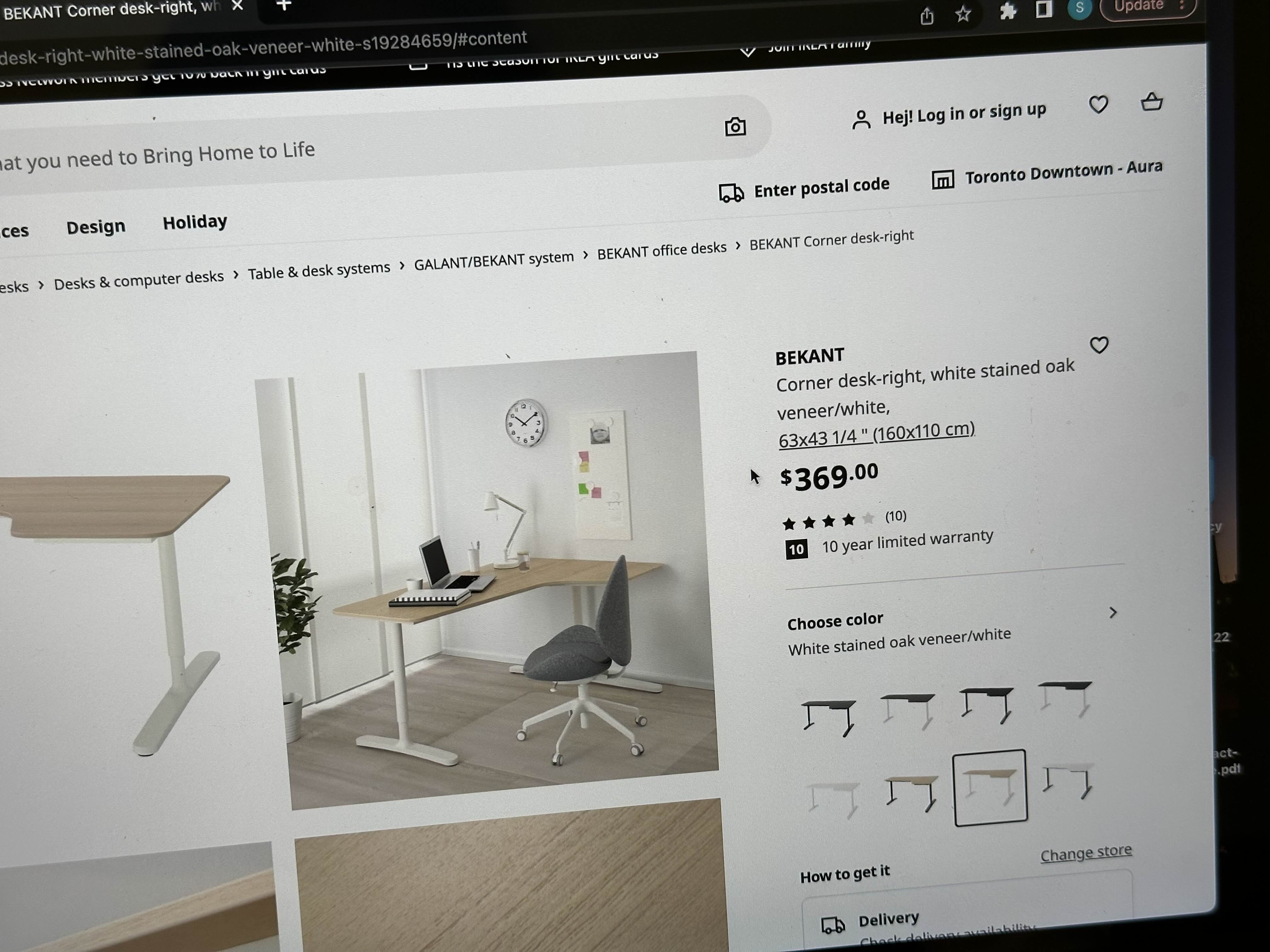 이케아 책상은 아니었는데 이케아 디자인처럼 깔끔하면서 조금은 더 탄탄해보였던 200불 미만의 책상. 가격도 괜찮고, wayfair라 무료 배송으로 받을 수 있어서 그냥 이걸로 사버릴까 했지만... 아무래도 32인치 모니터를 살 생각이라 모니터 놓고 쓰기엔 작은 느낌이기도 하고.... 리뷰에 올라온 실물을 좀 보니 왠지 좀 싼티가 나는 것도 같...