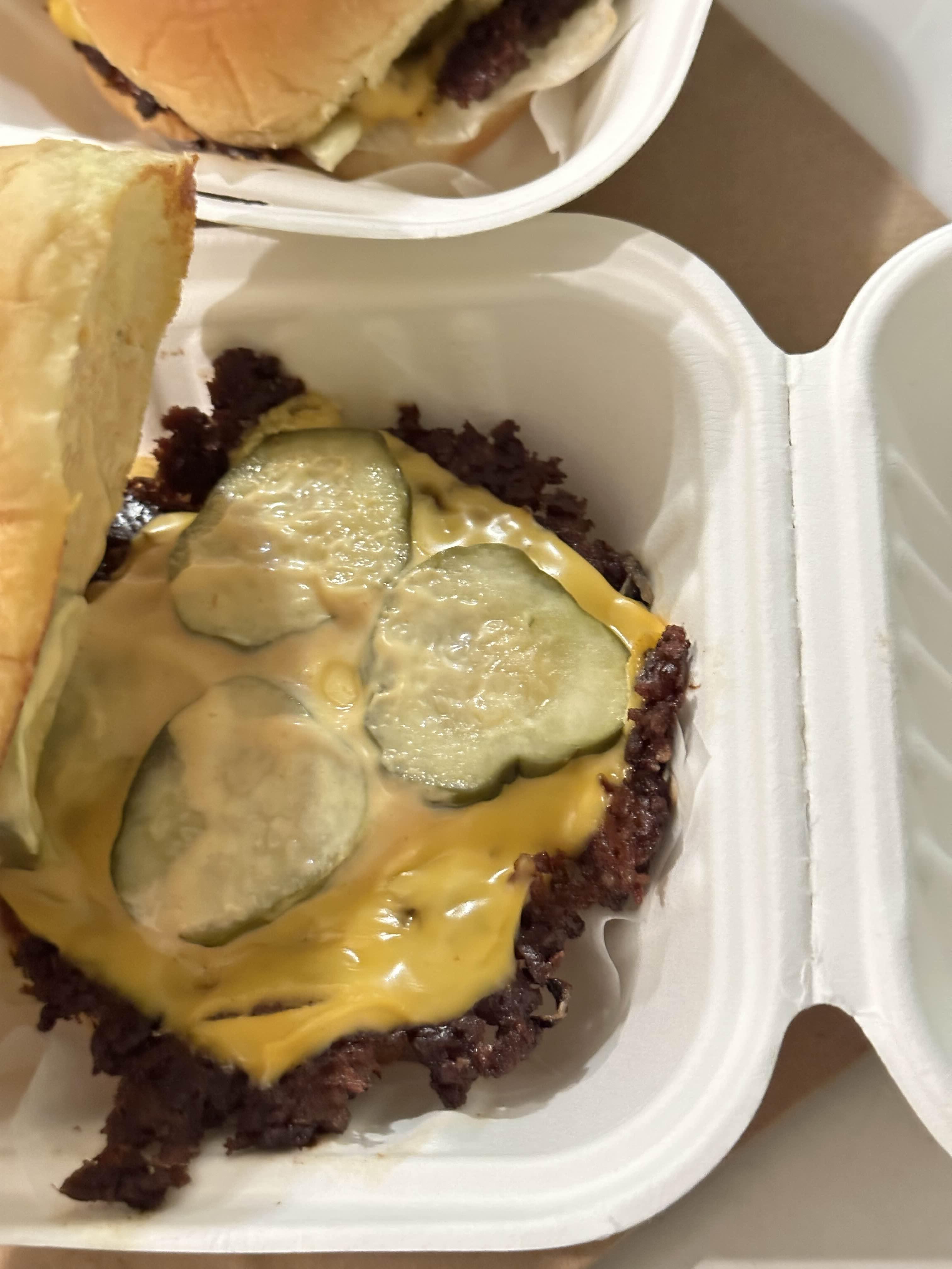 원래 메뉴에는 없었는데 스페셜로 팔고 있던 오클라호마 버거. 패티 + 구운 양파 + 치즈 + 홈메이드 피클 이라는데 치즈버거랑은 뭐가 다른건지 잘 모르겠음. 암튼 맛있다. 다만 치즈버거로 시킨다면 싱글은 양이 조금 적은 것 같아서 더블로 시키는 게 좋을 듯.