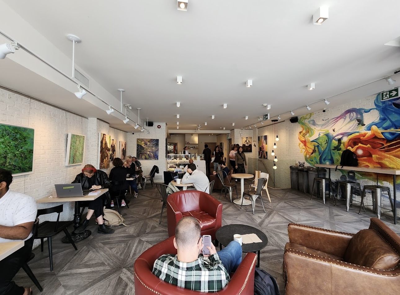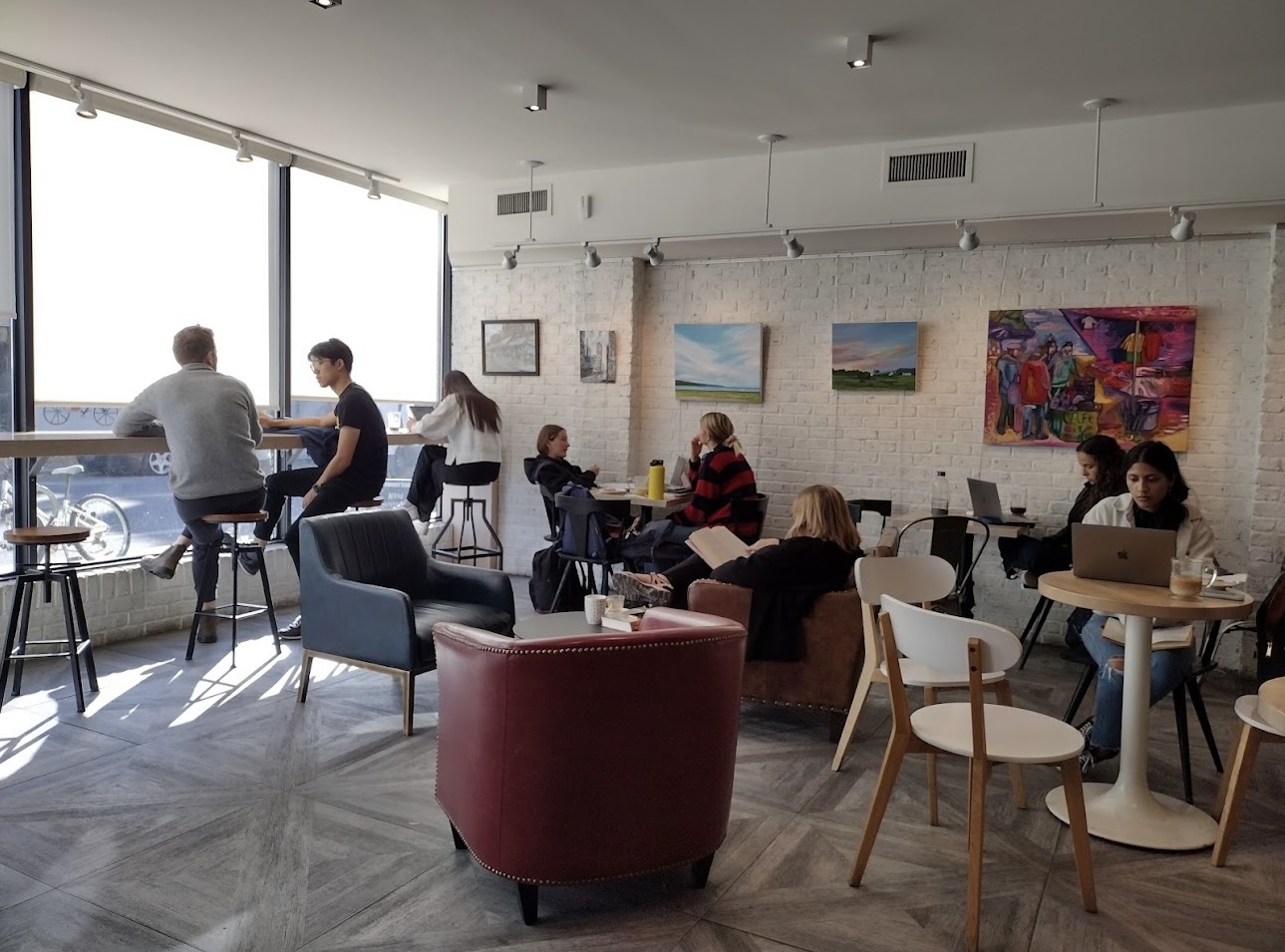 집 근처 작은 카페들과 비교하면 이정도는 그래도 꽤 넓은 편. 벽 가까이는 거의 다 노트북으로 공부나 일을 하는 사람들이 많고, 가운데 소파 자리에서는 담소를 나누거나 책을 읽는 사람들이 많았다. (사진은 남이 찍은 구글 사진)