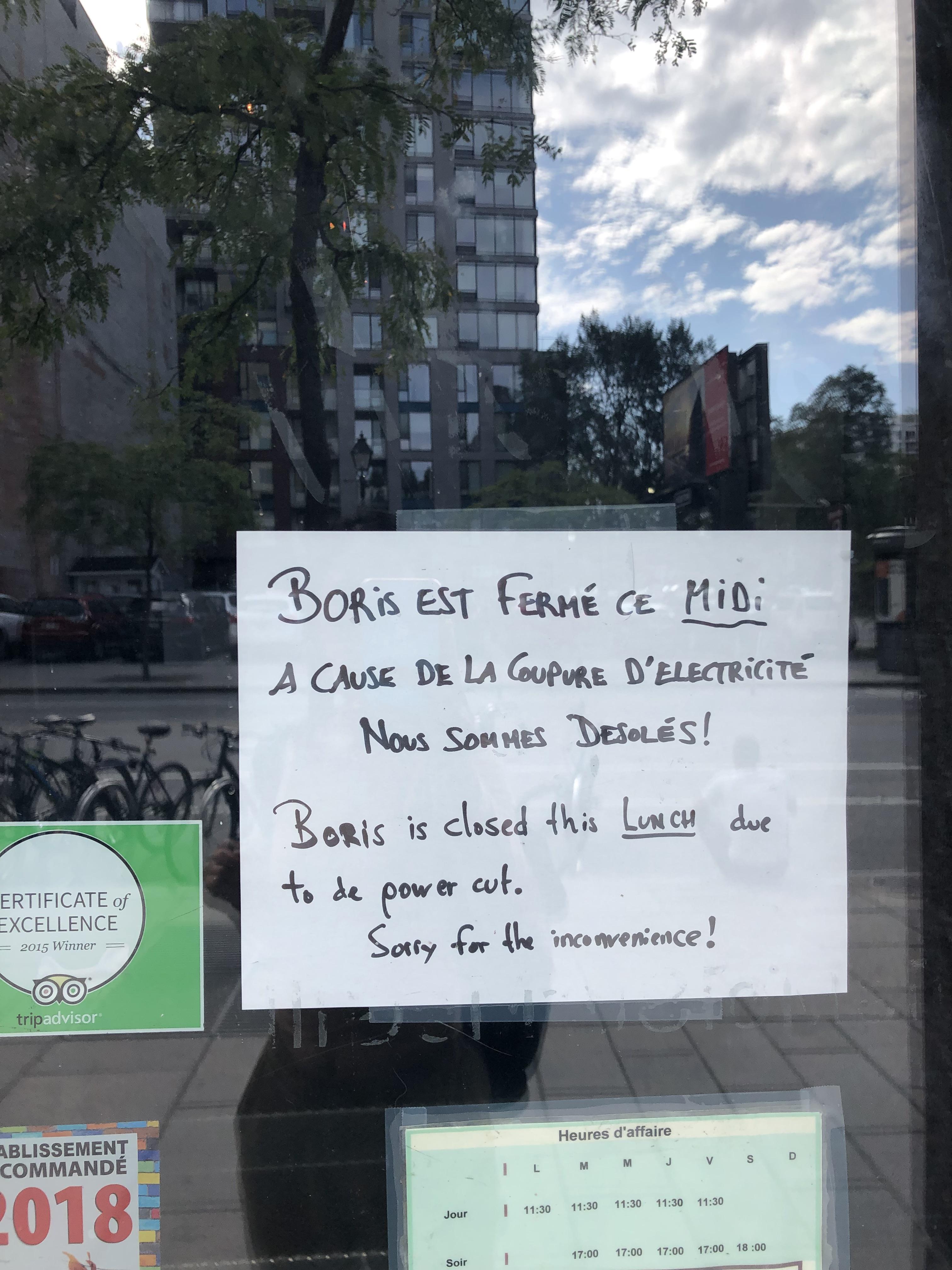 하필이면 내가 도착한 전날 오후에 다운타운 전체가 정전이 된 바람에 다음날 런치를 오픈하지 않는 곳이 대부분이었다. 몬트리올은 음식이 너무 맛있다고 해서 꼭 괜찮은 곳에서 런치를 하고 싶었는데 아쉽게도 그럴 수가 없어서 걸어 다니다 그냥 손님이 많은 곳에서 크로아상을 사 먹었다. 그냥 크로아상도 너무 맛있어서 한입 베어 먹고 깜짝 놀랐던 기억이!