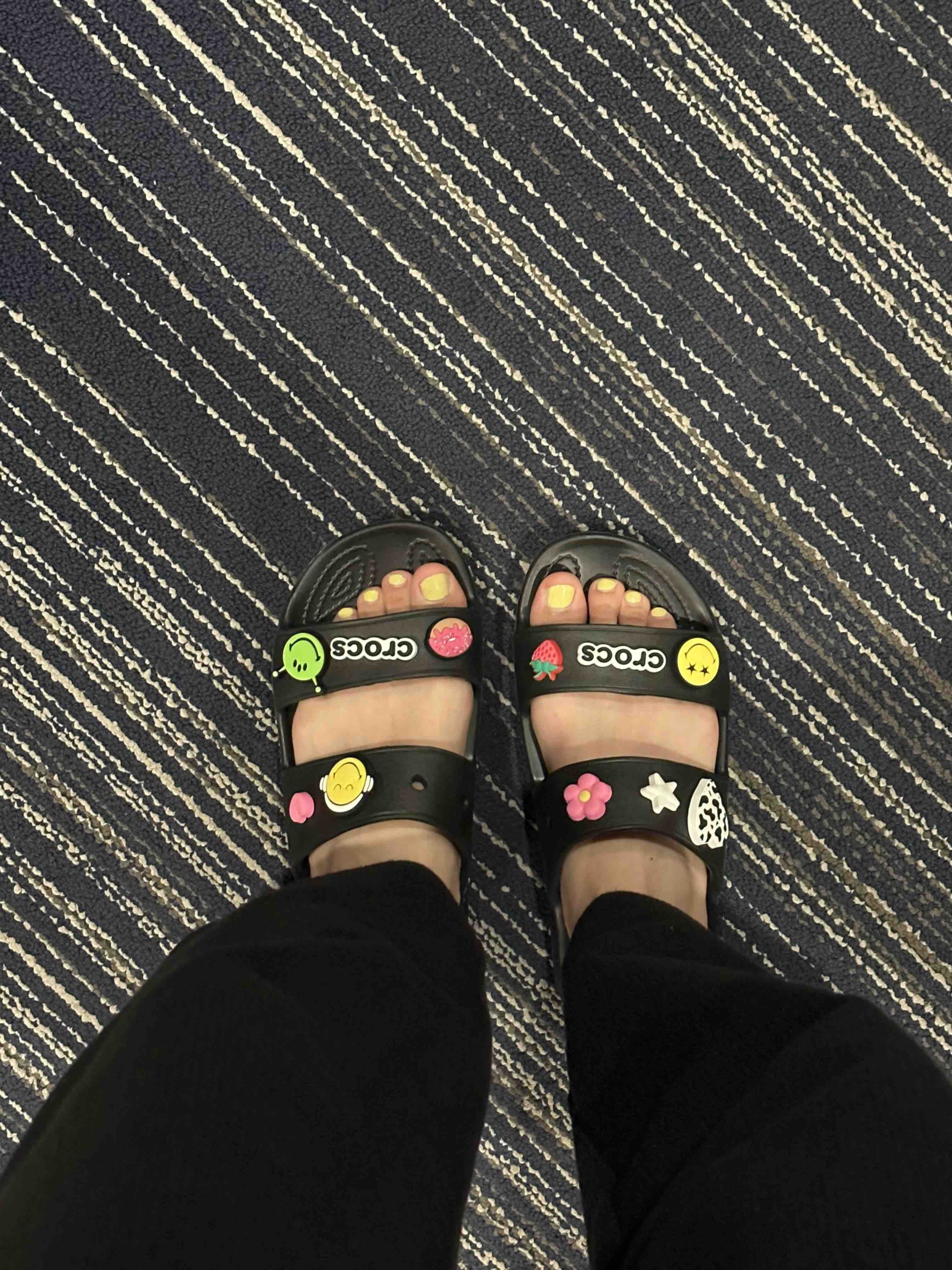 다들 많이 신는 오리지널 크록스는 나한텐 부피가 좀 커서 나는 가장 심플한 슬리퍼 중에 지비츠를 끼울 수 있는 걸로 사왔다. 평소에 신을 건 아니고 여행 다닐 때 가볍게 캐리어에 넣어다니거나 여름에 비치가서 신을 용도라... 사실 크록스 자체보다는 지비츠를 좀 사서 V에게도 주고 나도 꾸며보고 싶어서 크록스 고르는 거 보다 지비츠 고르는 데 시간을 훨씬 많이 썼다는... 하하