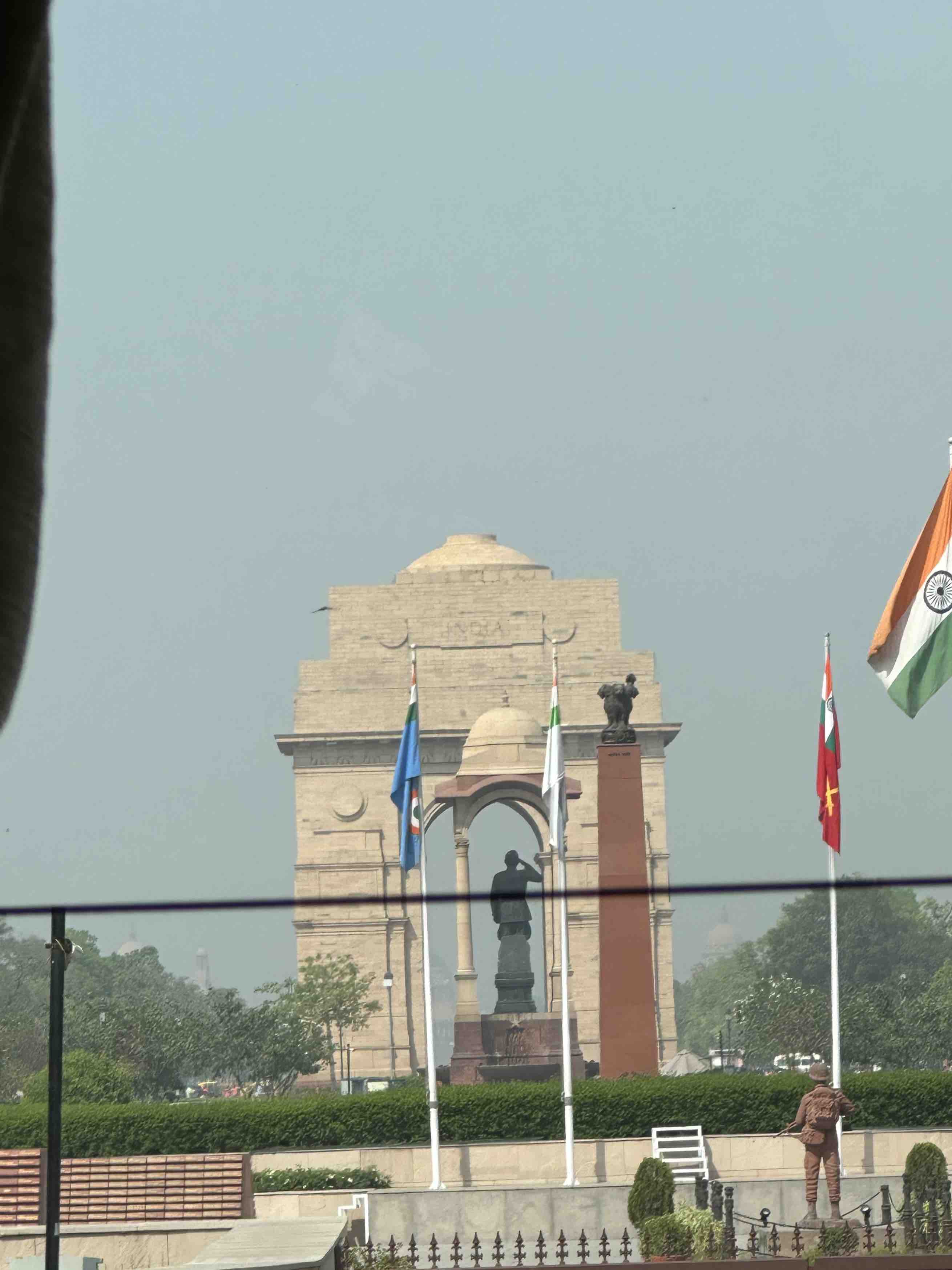 우린 내리지 않고 버스로만 주위를 돌며 차에서 구경했다. 사진으론 작아보이는데 실제로 보면 가운데 서있는 군인 동상도 굉장한 크기였다. 당시에는 크게 눈에 띄지 않았는데, 이제와서 사진으로 보니 확실히 뉴델리의 대기질이 엄청 나쁘긴 했구나라는 게 먼저 눈에 보인다;;