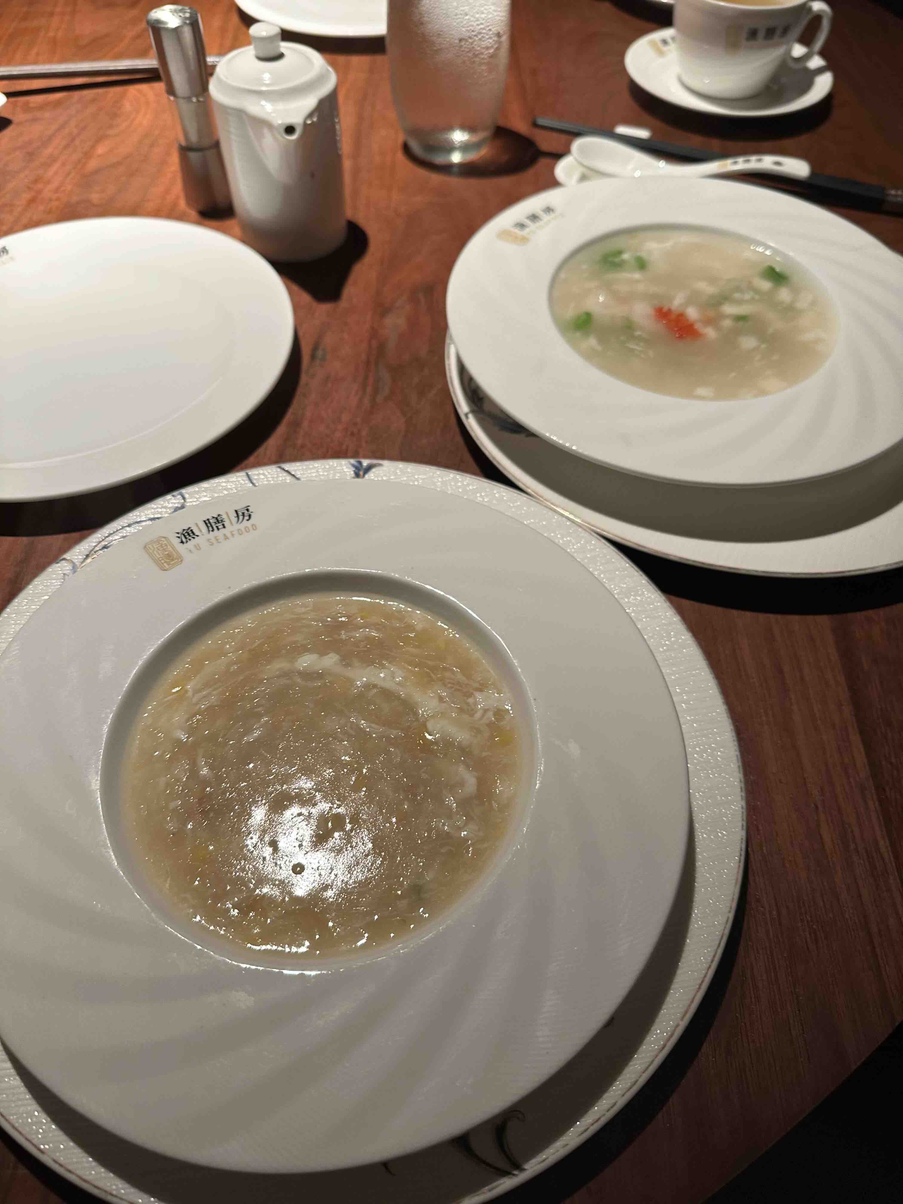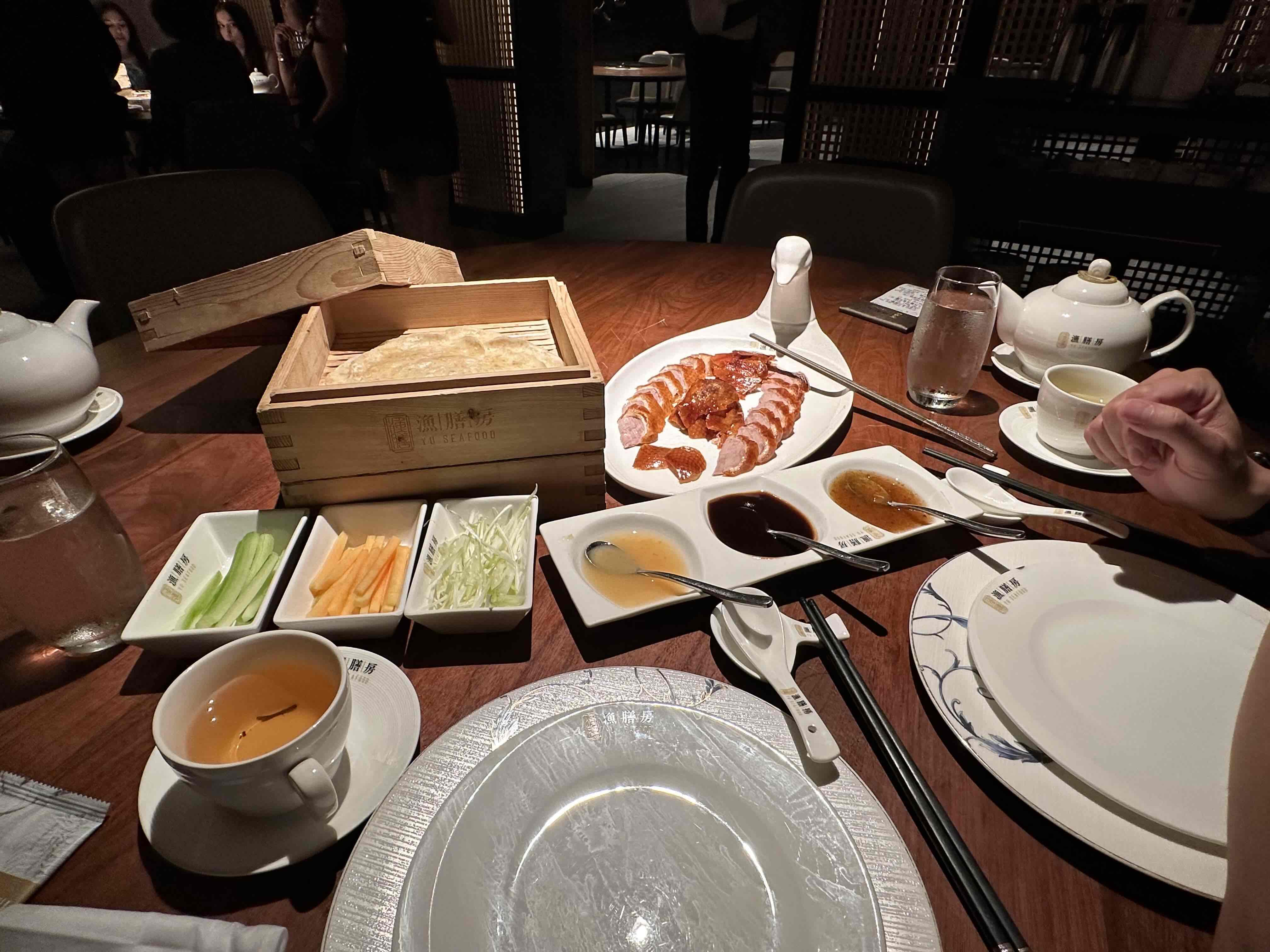 랍스터 2인 코스로 할지 페킹덕 코스로 할지 고민했지만, 랍스터는 더 잘하는 유명한 레스토랑이 있어서 이날은 페킹덕 코스로 선택. 총 3코스로 나오는데, 숩은 포함된 건 아니고 에피타이저로 따로 시킴. 스캘럽이랑 게살 올라간 걸로 두개 다르게 시켜봤는데, 그냥 차이니즈 레스토랑에서 먹는 숩에 새우랑 관자만 몇 개 형식적으로 올라간거라 괜히 시켰단 생각이...