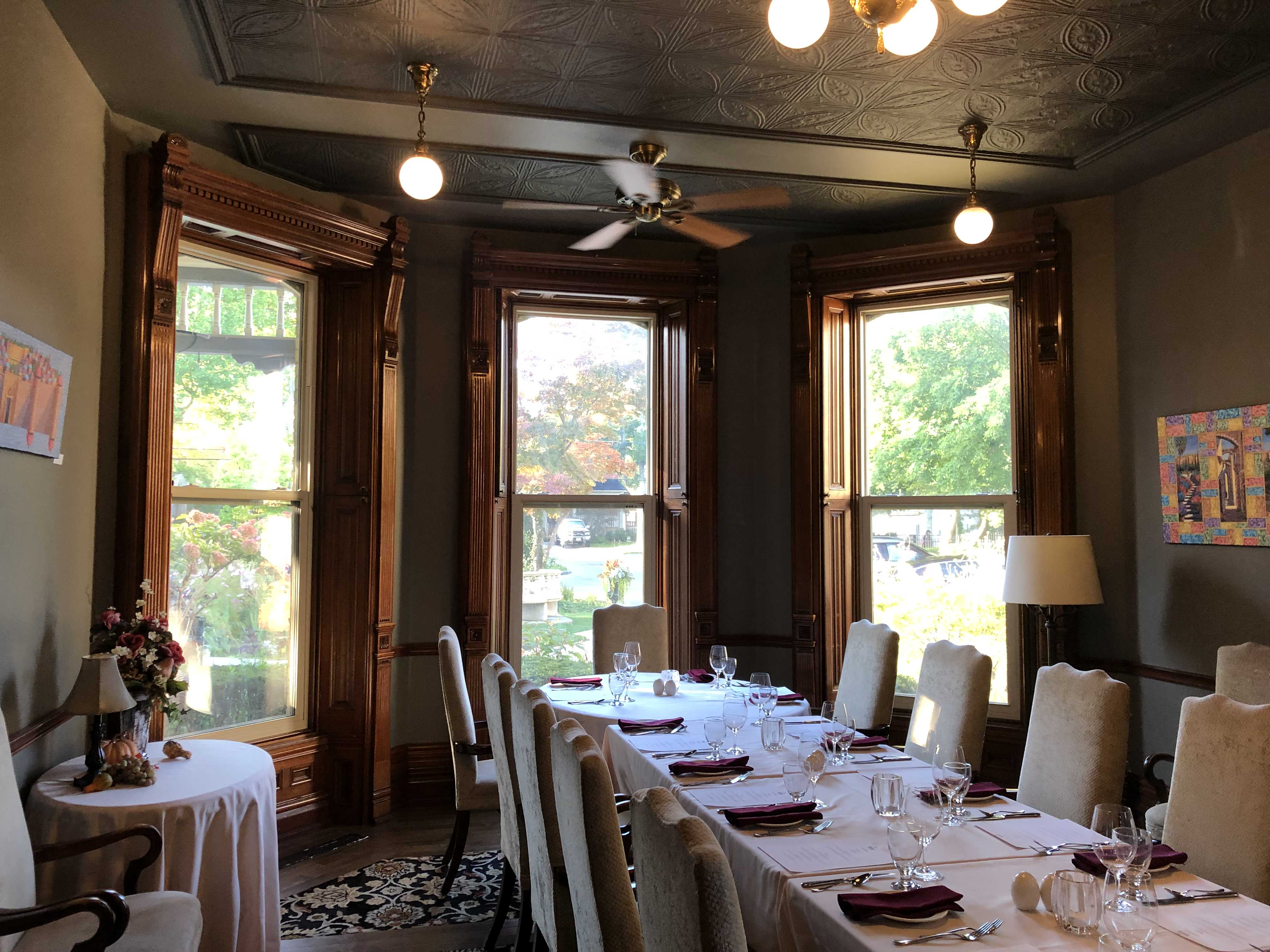 수요일 오전이라 예약은 없을 것 같았지만, 그래도 테이블이 이렇게 세팅이 되어 있었다. 혹시 런치 예약이 들어와 있었던 걸까? 사진에 보이는 창문으로 보이는 바깥 정원이 너무 예뻤다. (영국은 안 가봤지만) 뭔가 영국에 온 것 같은 느낌.