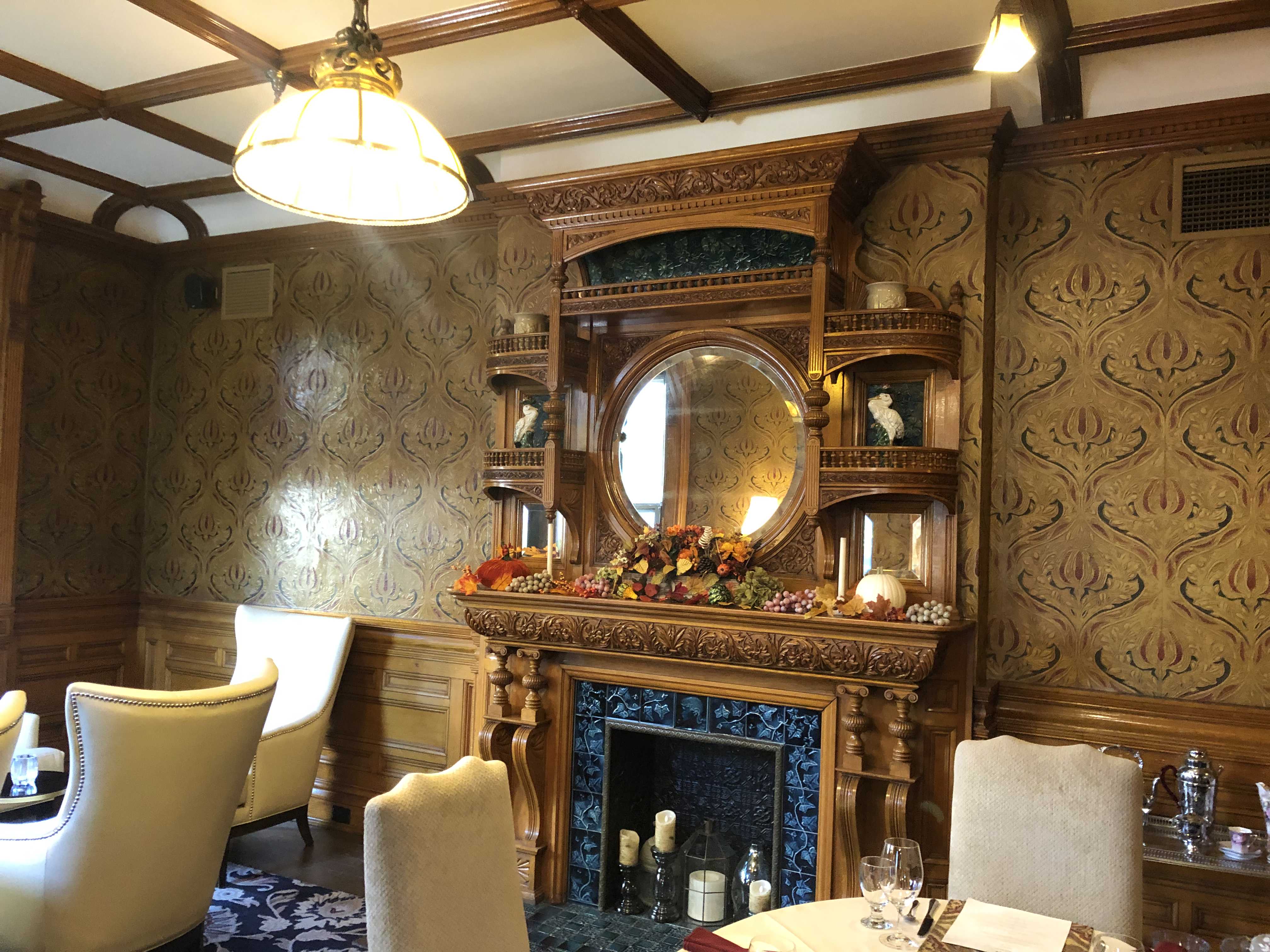 너무 만족스러운 아침식사를 마치고 전날 바깥에서만 둘러본 다이닝 룸을 다시한번 살펴봤다. 옛날 분위기 제대로 나는 벽지, 카펫, 가구들. tea pot들이랑 찻잔들도 너무 예쁘고 오래된 것 같았다.