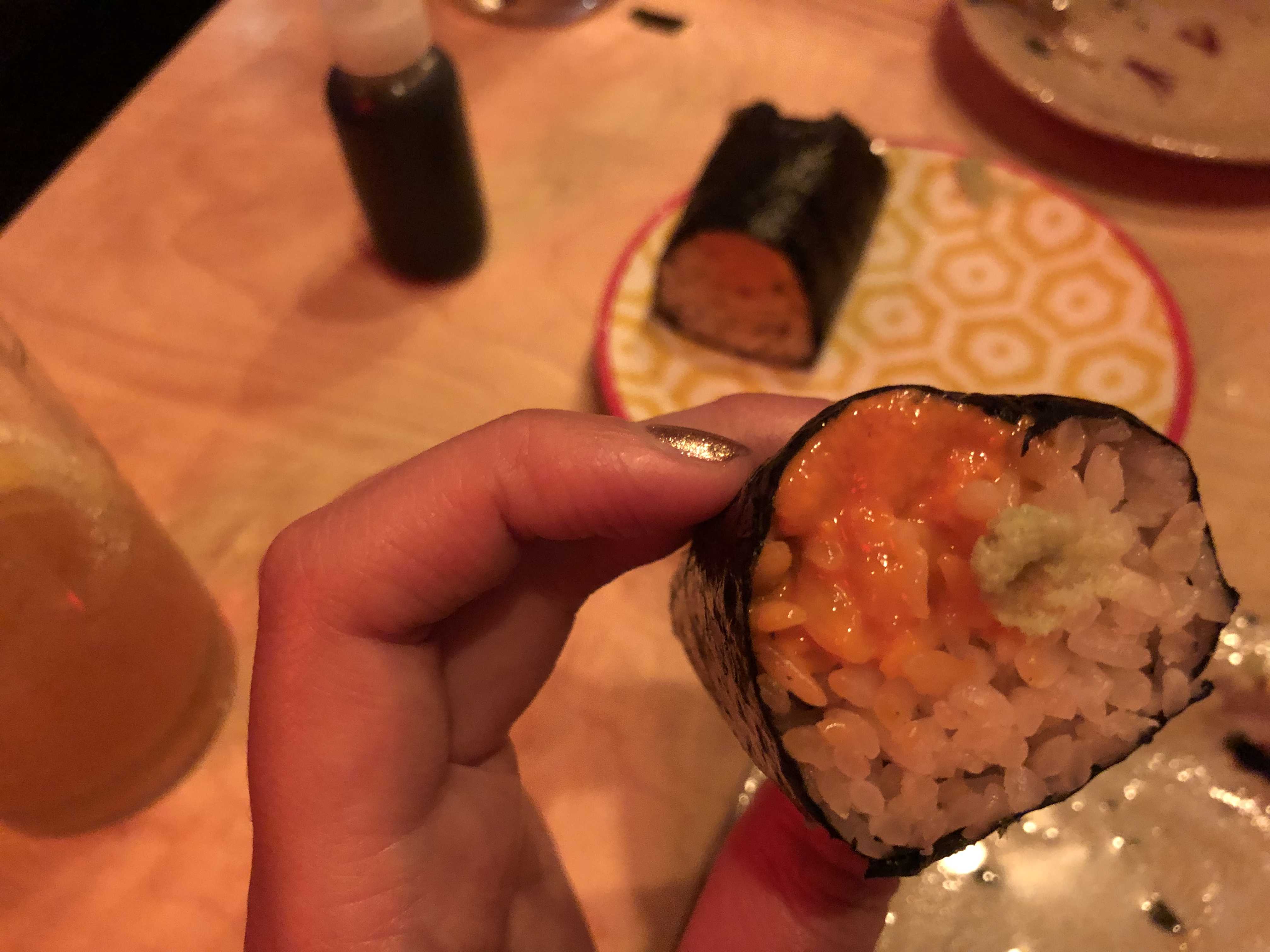테마키(한 손으로 먹을 수 있도록 싼 마키 스시)가 유명한 곳이라고 해서 우선 2가지 종류를 시켜봤다. 그중 첫 번째였던 Uni Temaki. 우니를 먹기는 하지만 아직 그 맛을 잘 모르겠는 내가 먹기에도 너무 신선했고, 씹자마자 달콤한 우니향이 입안에 확 퍼졌다. 우니 킬러인 L은 말할 것도 없이 너무 감탄하며 먹었다.