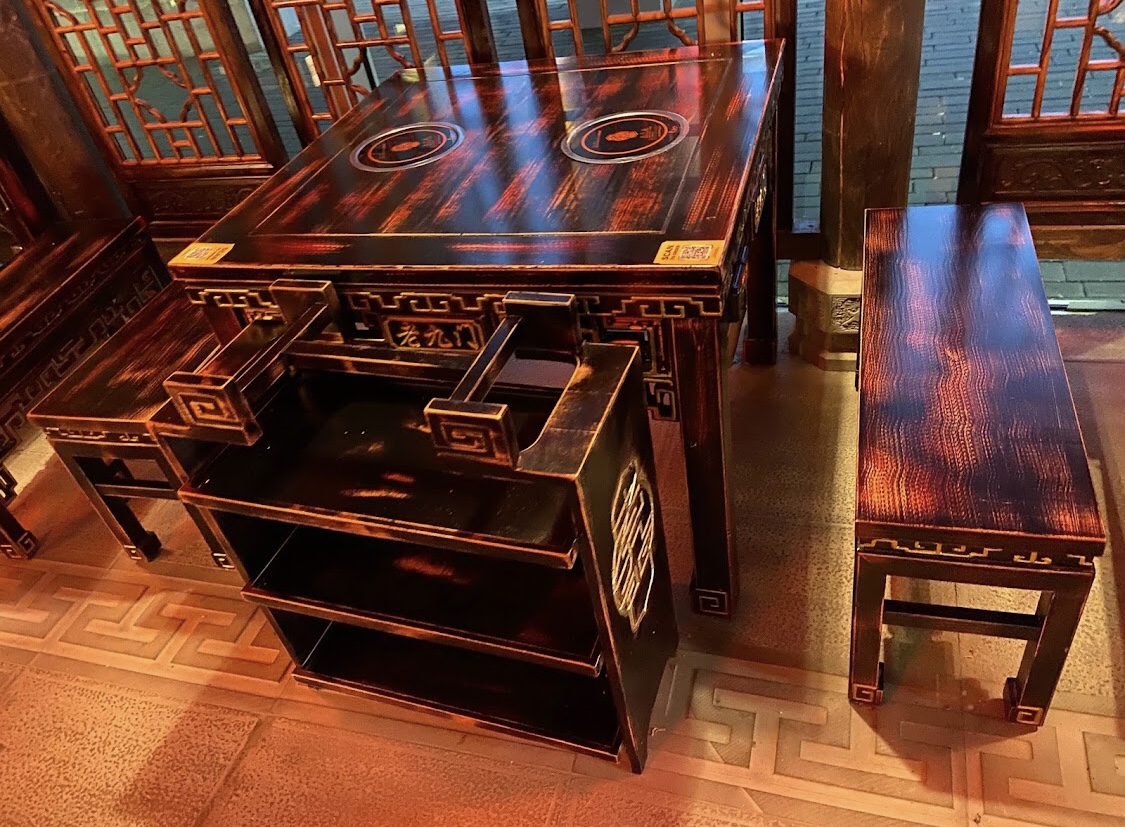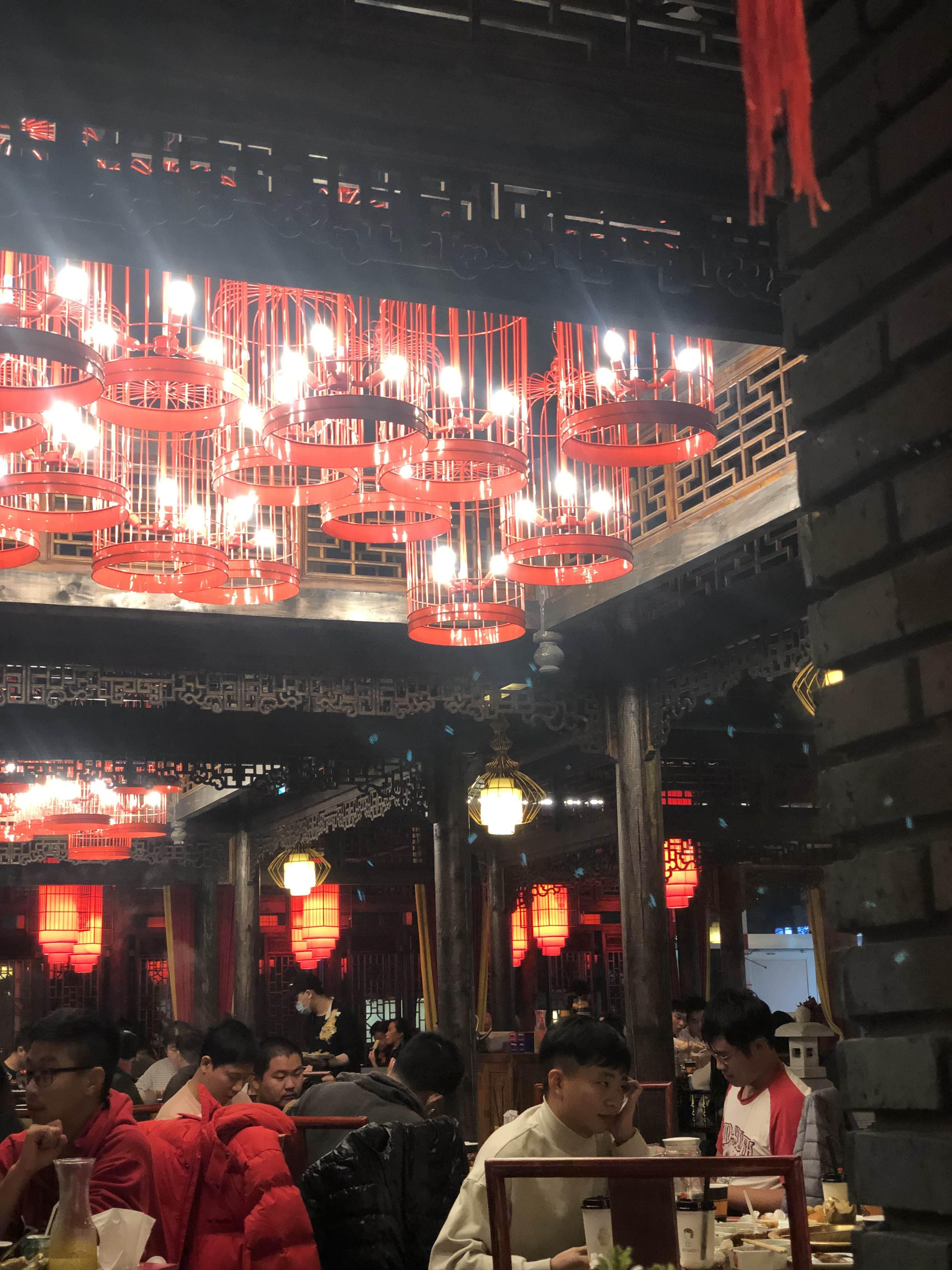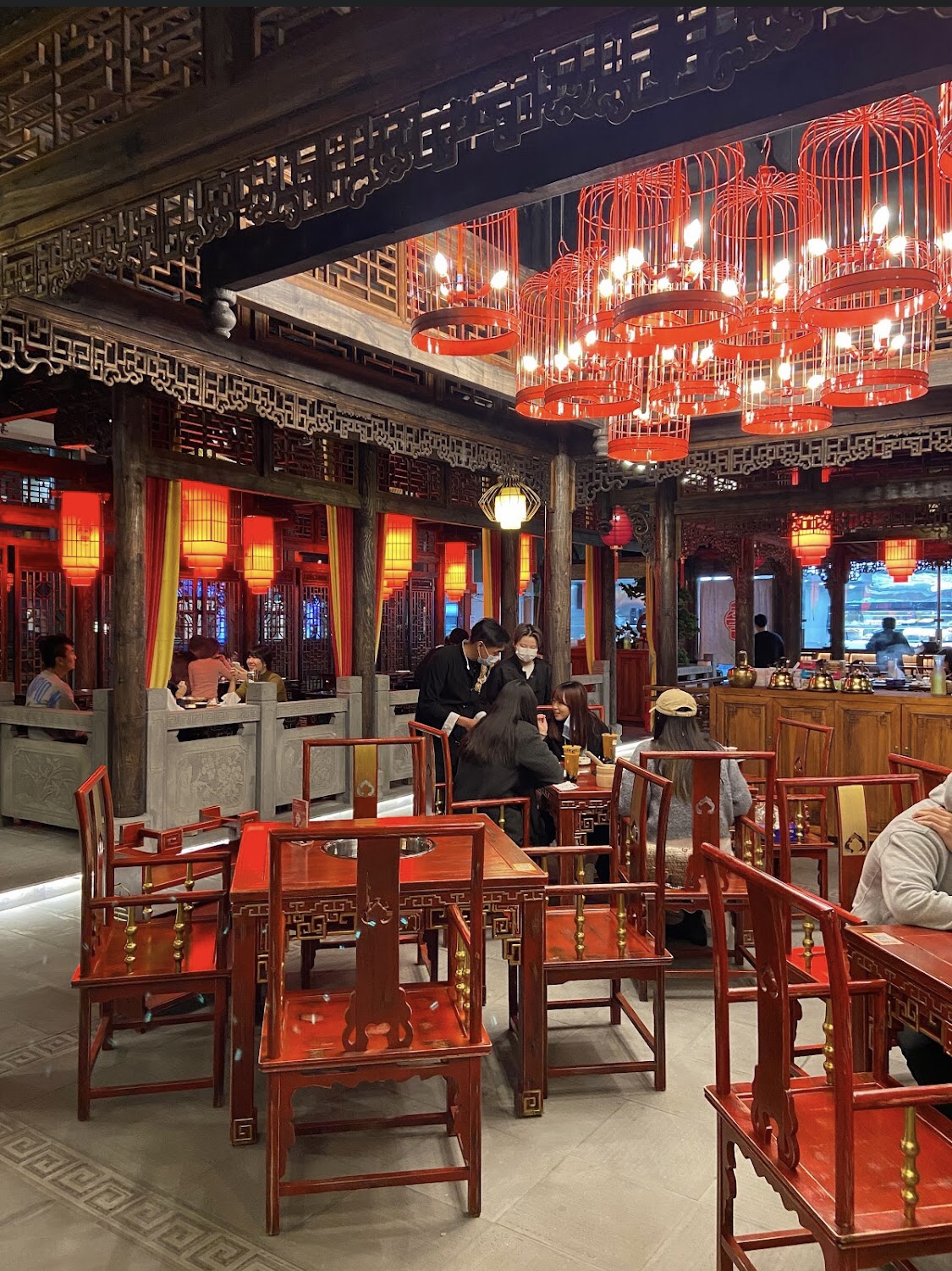 모든 테이블과 의자가 이렇게 생겨서 진짜 중국에 온 것 같고 신기했다. 밖에서 보면 그냥 깔끔한 건물인데 입구에서 문을 열고 들어오자마자 전혀 다른 세상에 들어온 것 같아서 신기했다.