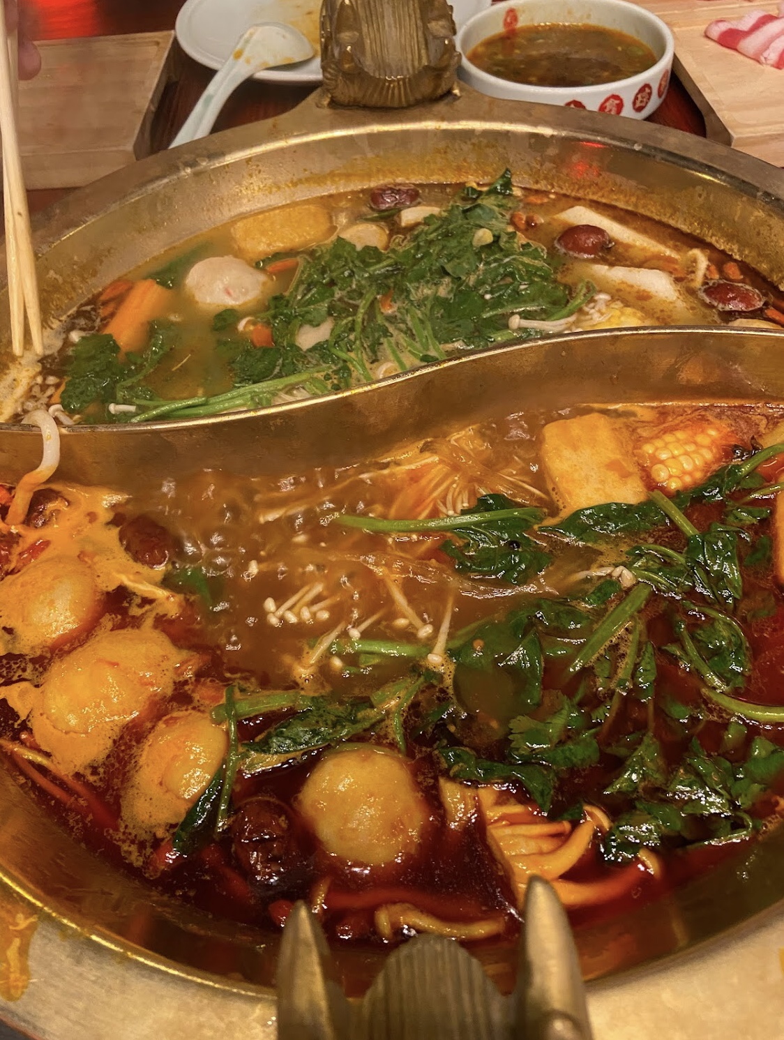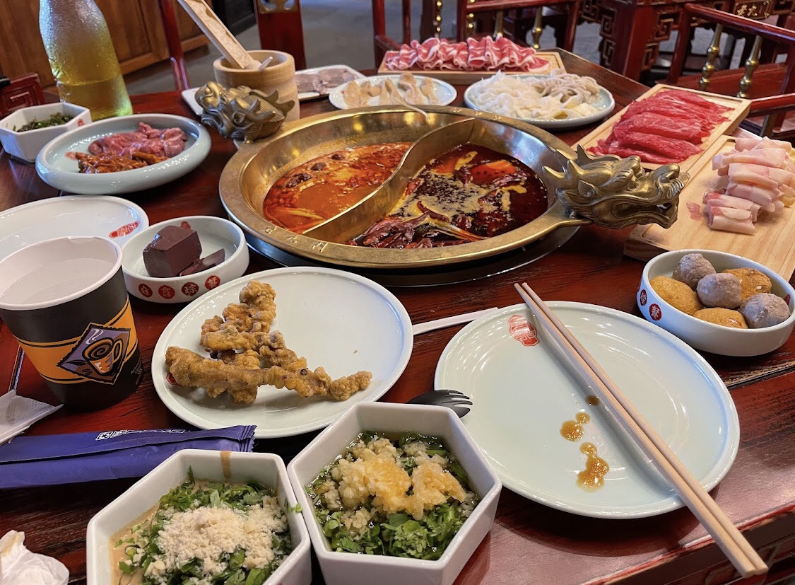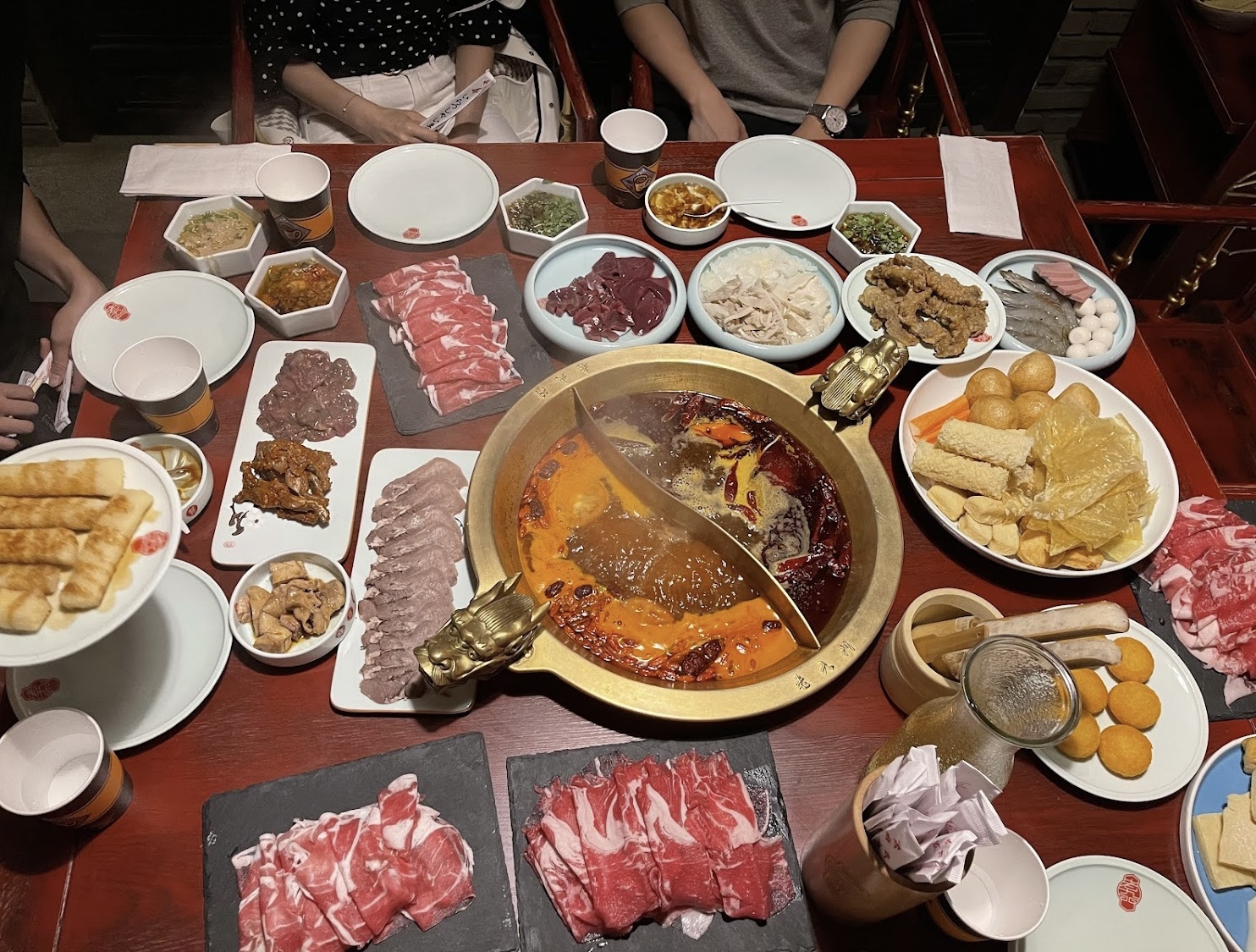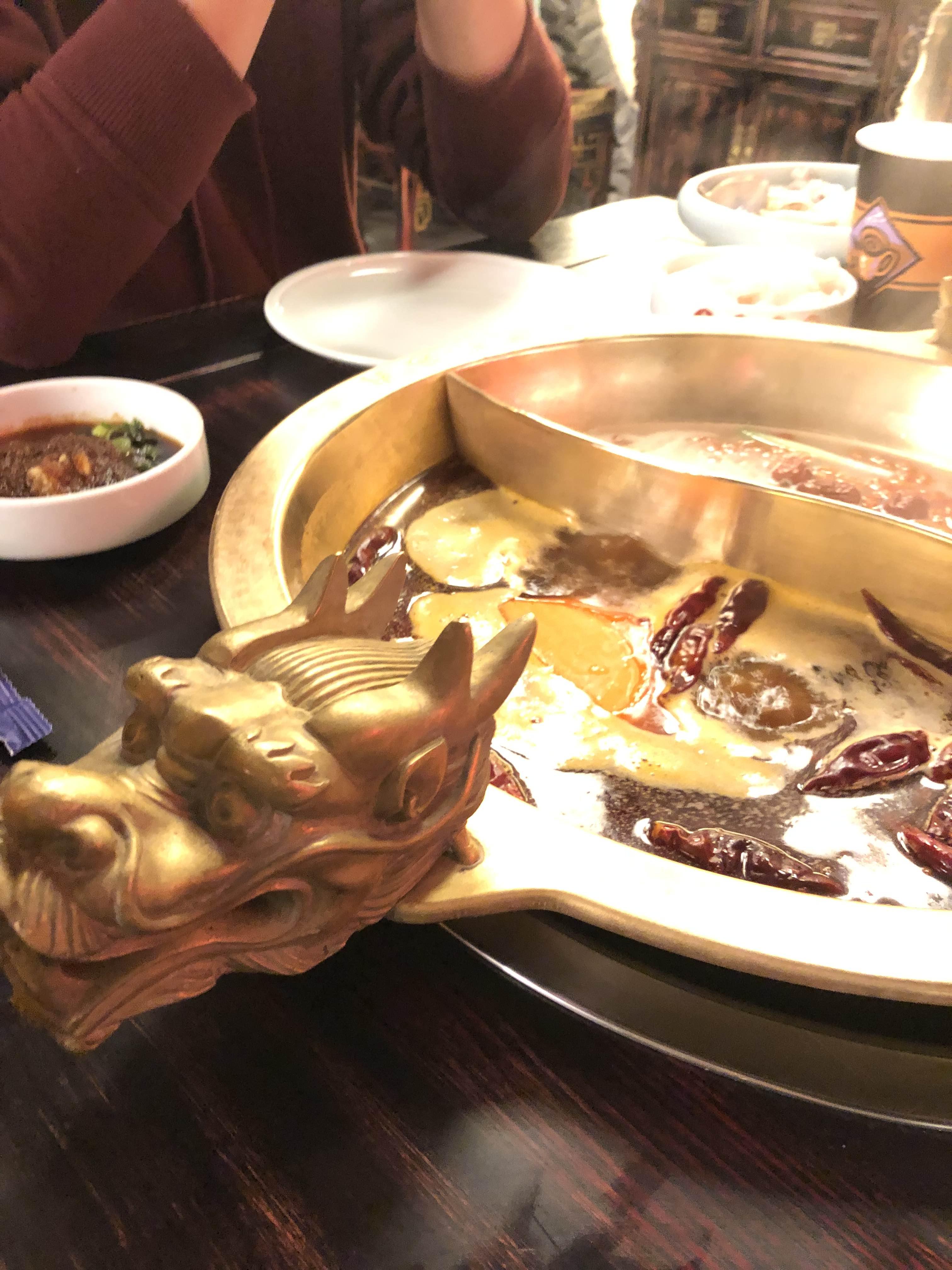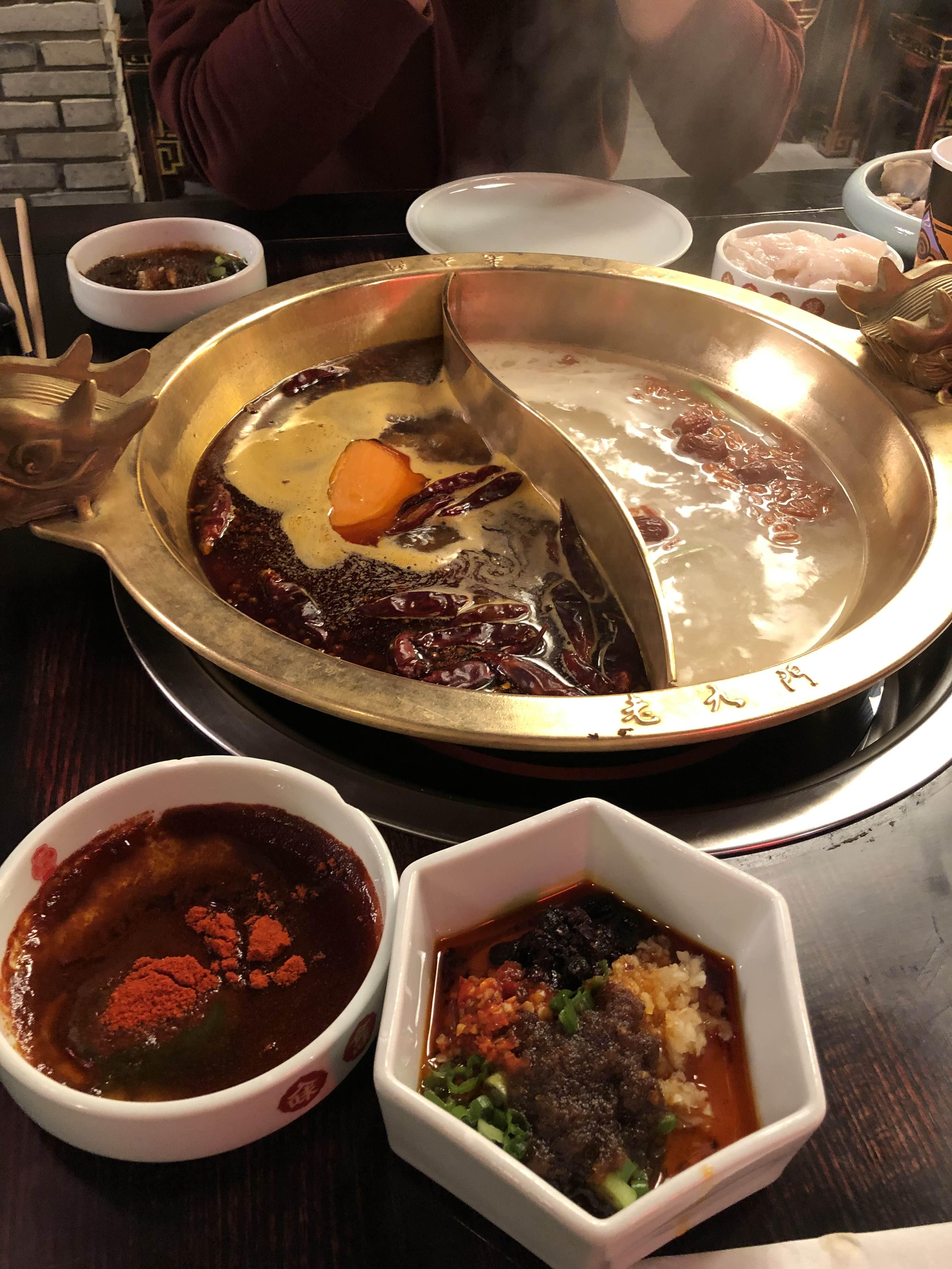 남이 찍은 사진 5. 이렇게 샤브샤브 처럼 이것저것 넣어서 건져 먹는 차이니즈 핫팟. 특히나 매운 고추가 잔뜩 들어간 내가 고른 숩이 너무 맛있었다. 한국인인 내가 먹어도 코가 찡할 만큼 매웠는데, 통후추랑 마른 고추에 다양한 향신료가 정말 많이 들어가 있었다. 따로 소스에 찍어먹지 않아도 될만큼 숩 자체가 향이 풍부한 편이라 뭘 넣어서 먹어도 맛있었다.
