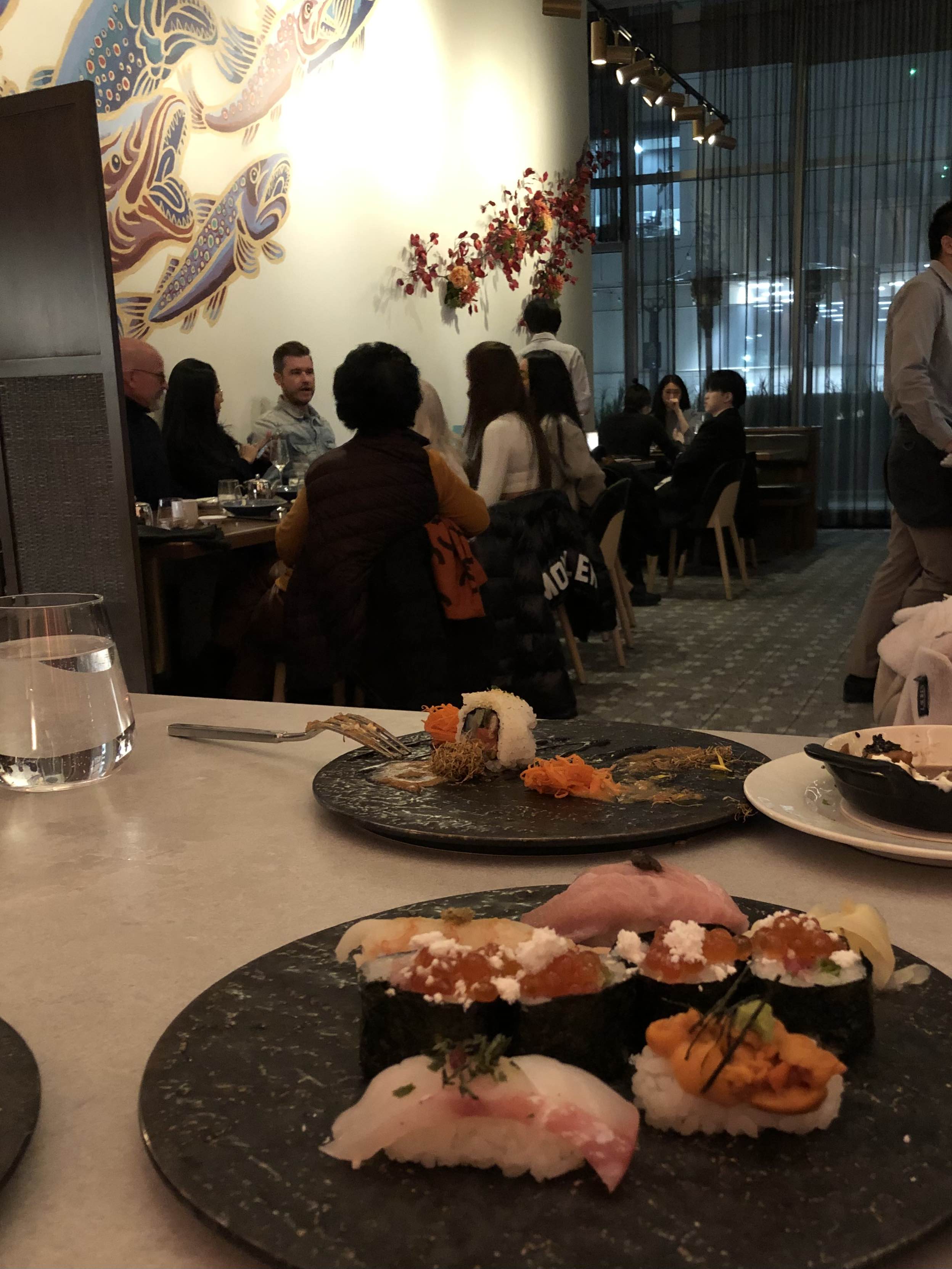 근데... 음식 사진 잘 못찍는 내 잘못인가...? 아님 조명탓...? 근데 그걸 다 떠나서 바빠서 그랬나 중간에 롤을 너무 대충 싼 게 다 보이는거다. 이쿠라도 구글 사진에 올라간 것보다 훨씬 적고... 게다가 일본 식재료들 중에 다른 건 다 잘먹어도 시소랑 우매는 아직까지도 잘 못먹는 편인데, 롤 바닥에 시소가, 스시 위에 우매소스가 들어가 있어서 그 점까지 개인적으로 마이너스...