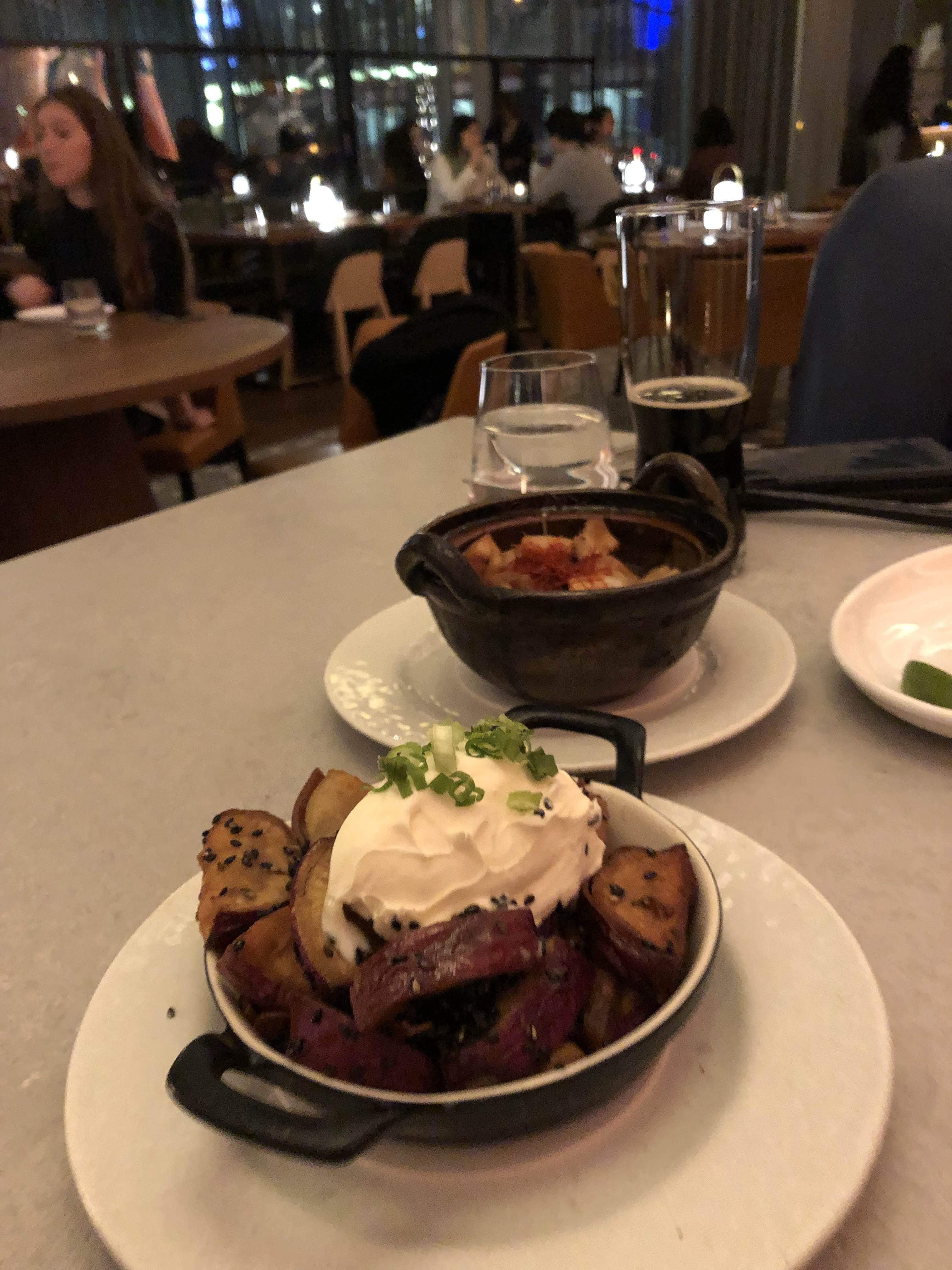 에피타이저 종류가 많이 없어서 고민에 고민을 하다 고른 두가지. 앞에 보이는 건 고구마였고 뒤에 보이는 건 와일드 머쉬룸? 둘다 사실 그냥 그랬다. 여기 한국인 셰프들이 있는 걸로 알고 있는데 앞에 있는 메뉴는 그냥 고구마맛탕에 크림만 올려둔 거였고, 와일드 머쉬룸은 그나마 먹을만 했지만 먹다보니 일식 에피타이저로 먹기엔 간이 좀 센 편.