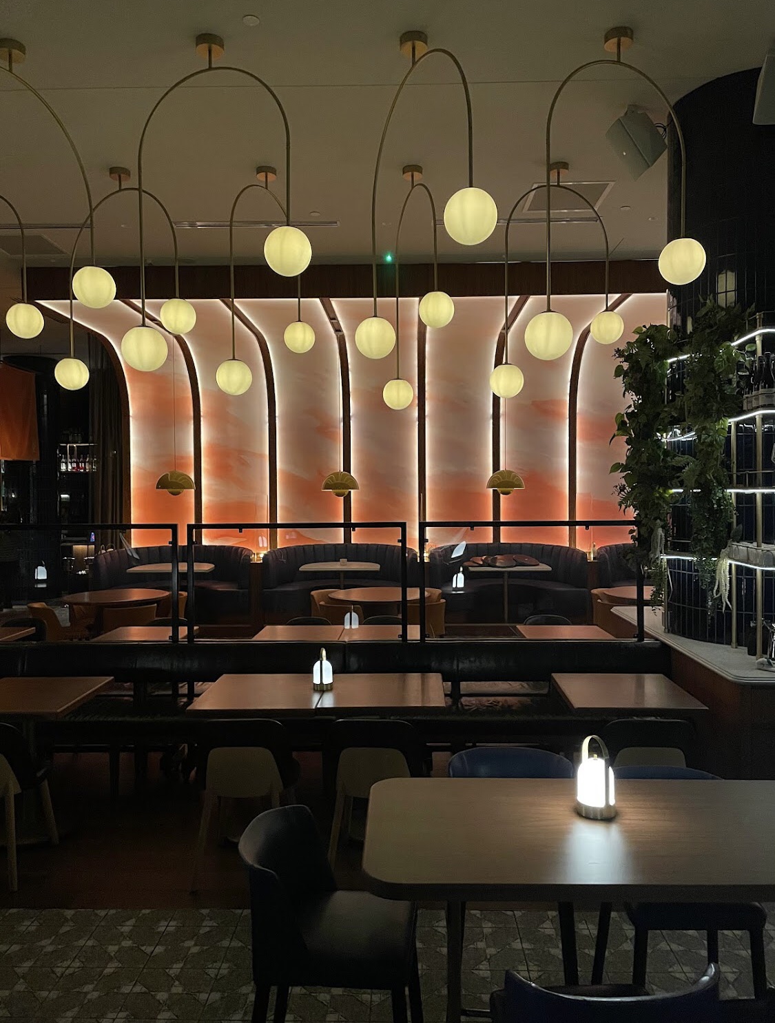 어김없이 구글맵에서 가져온 사진. 확실히 실내 인테리어가 눈에 띄는데 한쪽 벽면이 은은한 핑크빛으로 채워져있고 가운데 천장의 동그란 램프들도 정말 예쁘다. 거기에 테이블 마다 놓인 작은 램프들이 분위기를 더해준다.