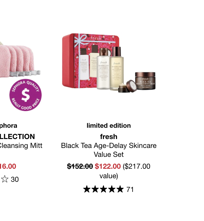 그러다 눈에 들어온 fresh Black Tea 라인. 원래는 50ml 퍼밍 코르셋 크림이랑 150ml 콤부챠 에센스를 따로 각각 구입하려고 했는데, 우연히 들어가 본 Sale & Offfers 페이지에서 이 두개가 포함된 리미티드 에디션이 할인중인게 아닌가!